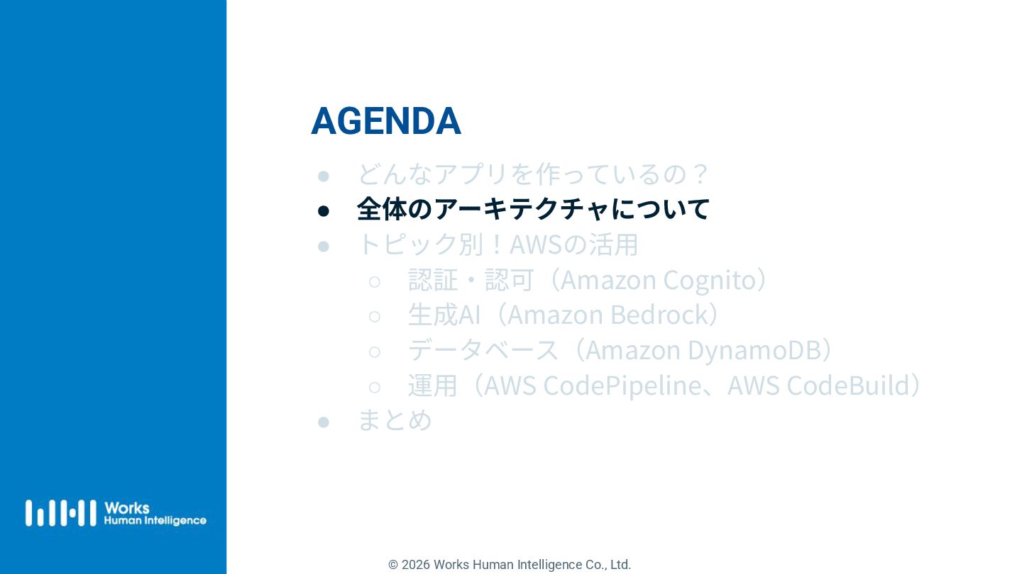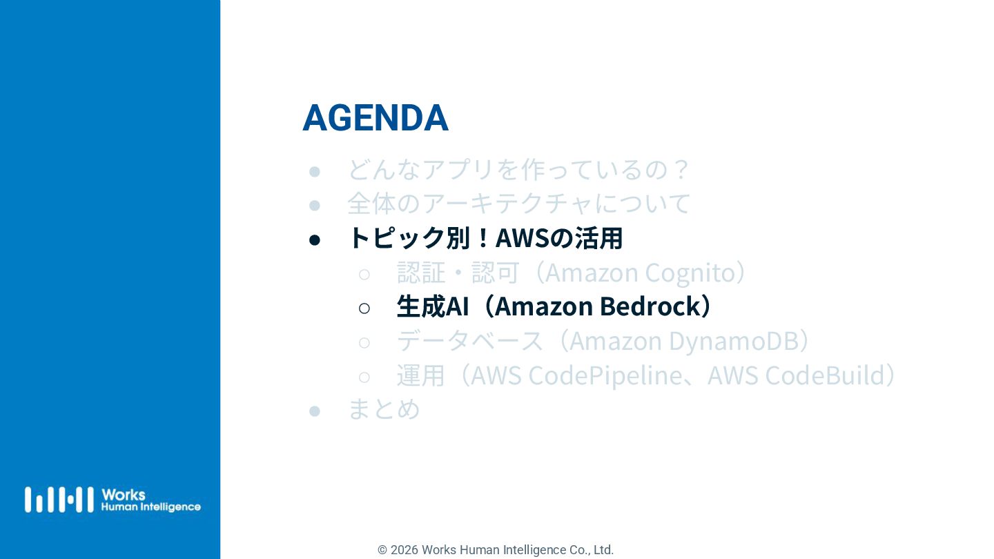 © 2026 Works Human Intelligence Co., Ltd. ⽣成AI(Amazon Bedrock) •