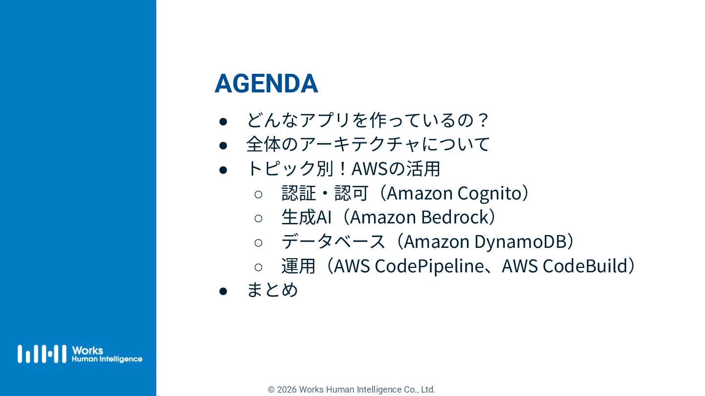 © 2026 Works Human Intelligence Co., Ltd. AGENDA • どんなアプリを作っているの?