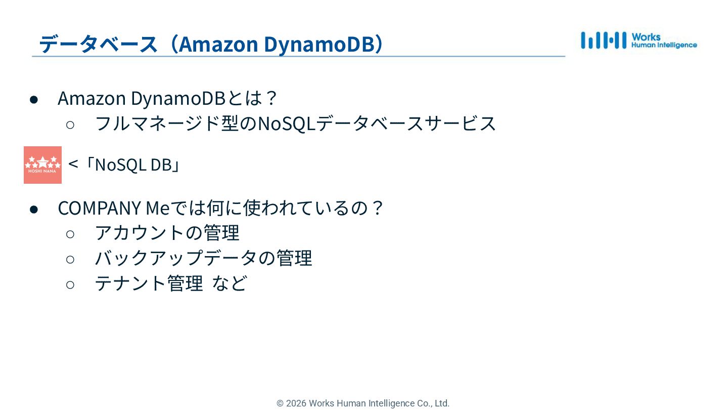 © 2026 Works Human Intelligence Co., Ltd. データベース(Amazon DynamoDB) •