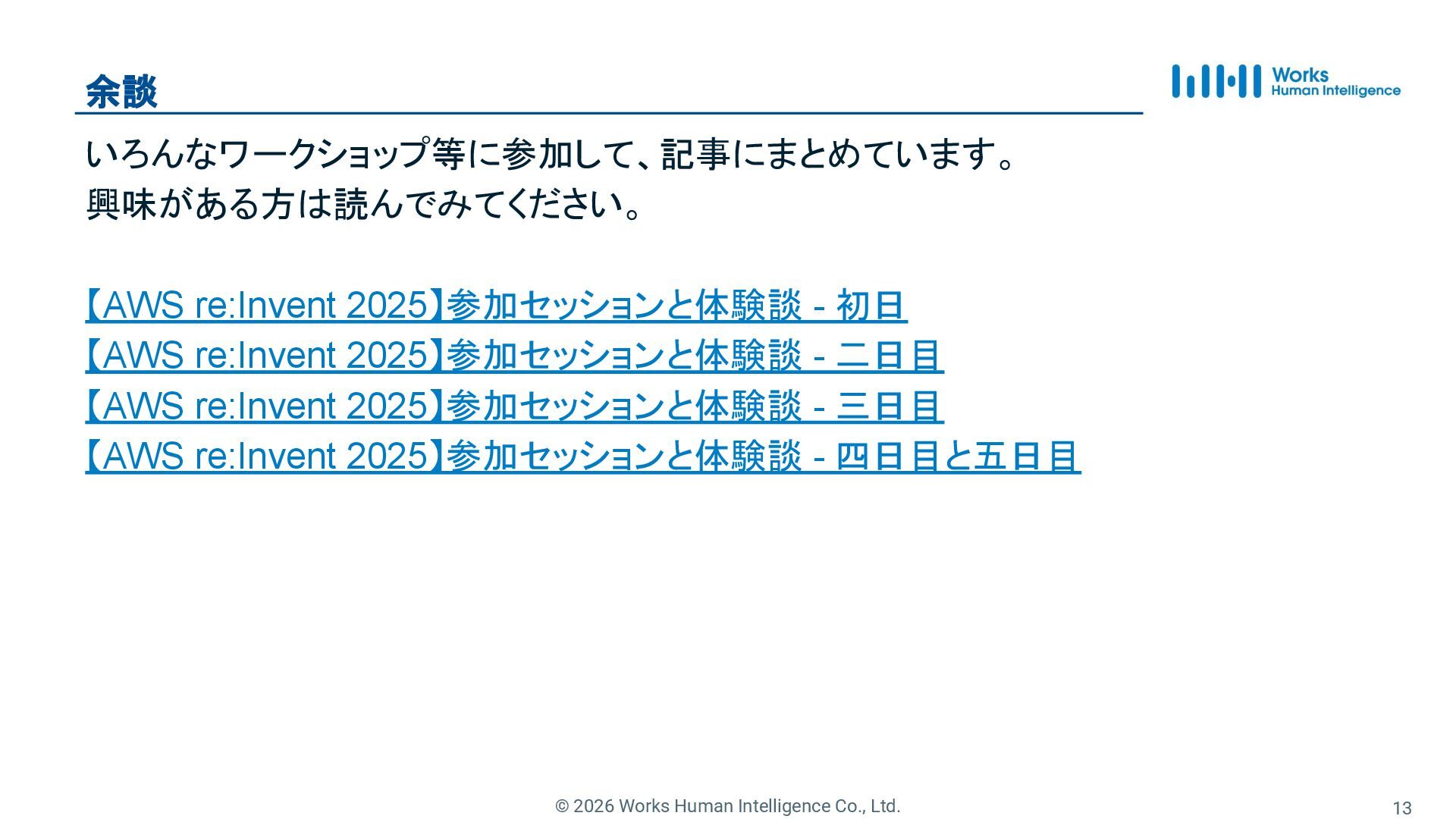 12. © 2026 Works Human Intelligence Co., Ltd. 余談
