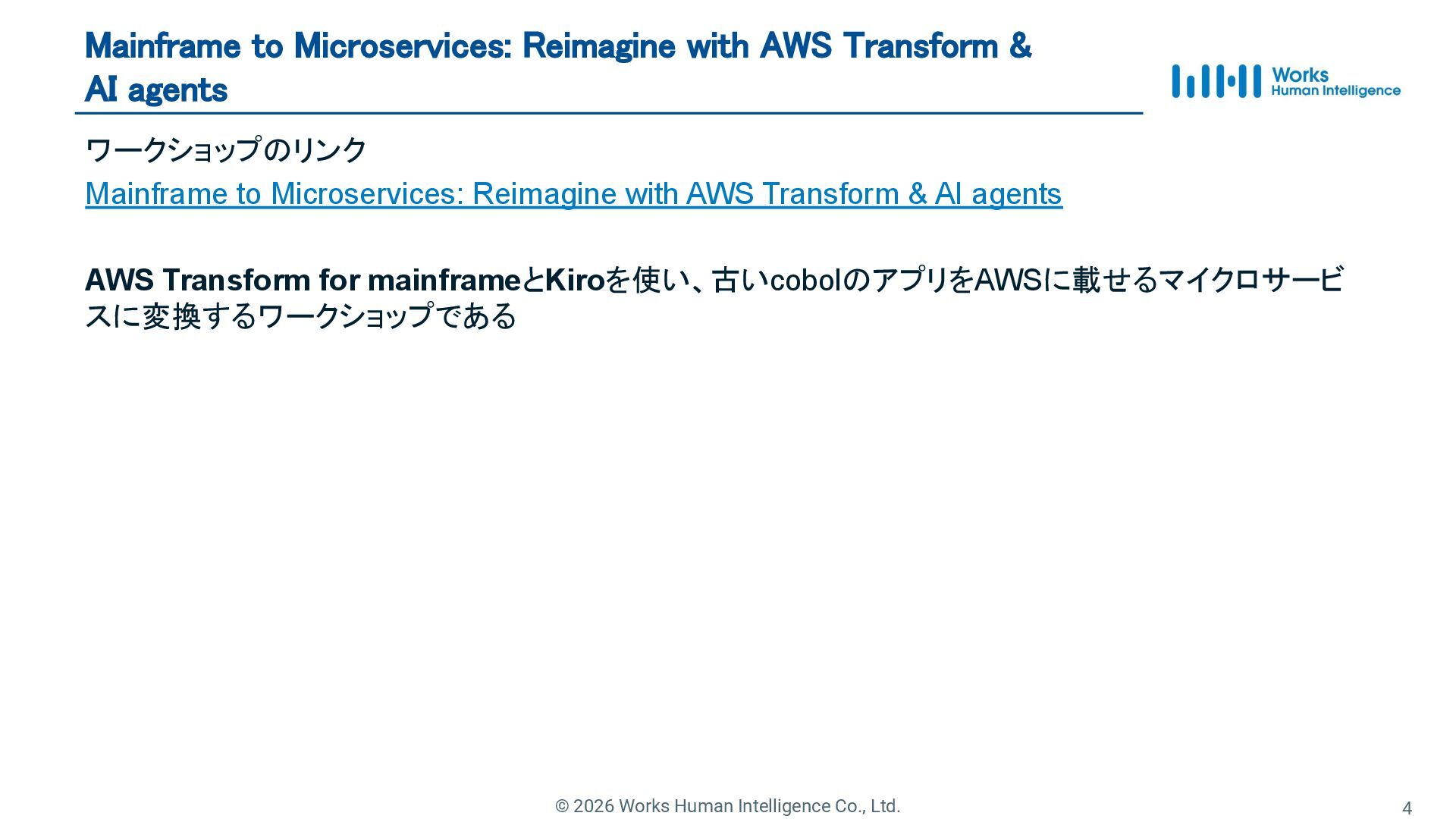4. © 2026 Works Human Intelligence Co., Ltd. AWS Transformとは?