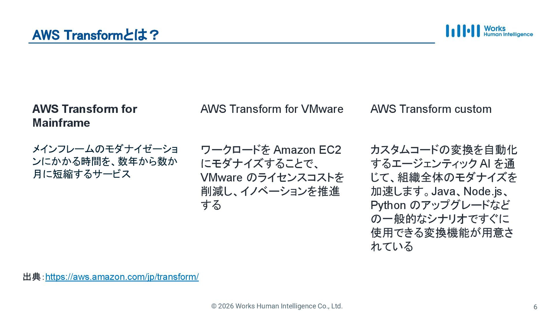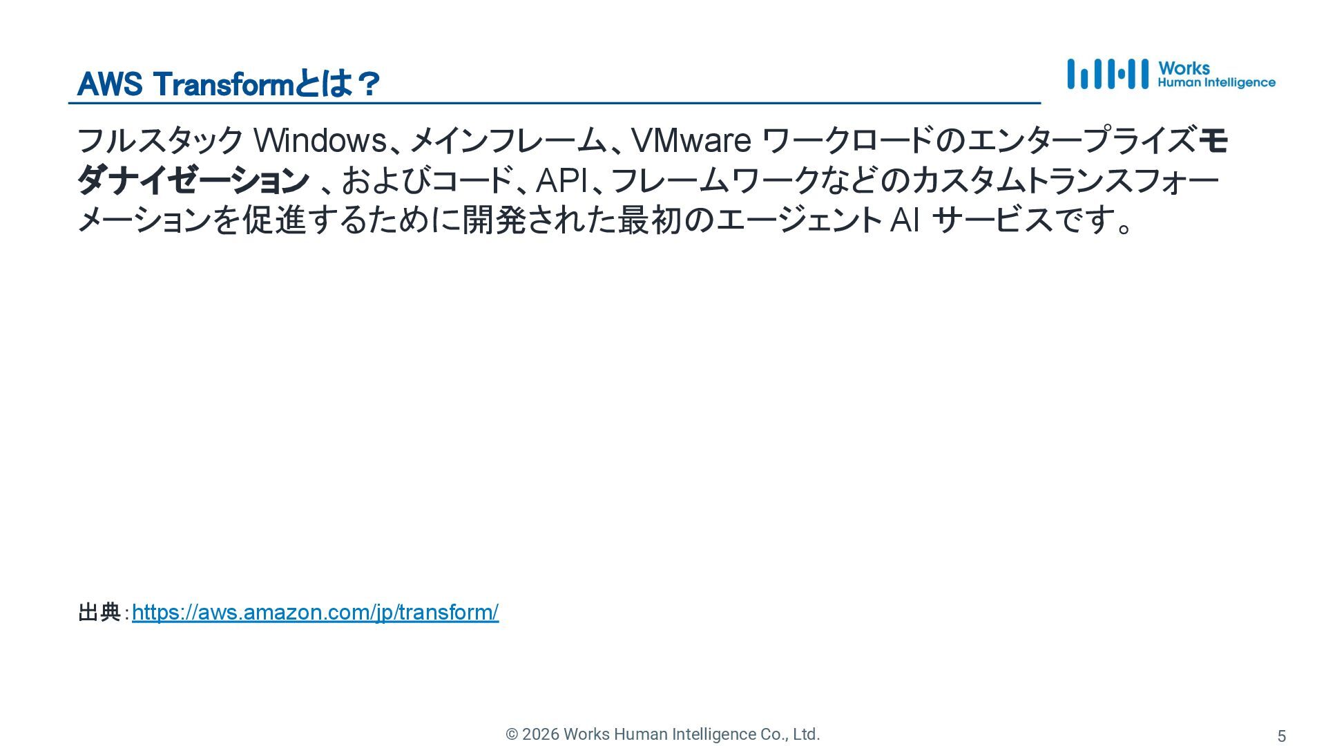 5. © 2026 Works Human Intelligence Co., Ltd. AWS Transformとは?