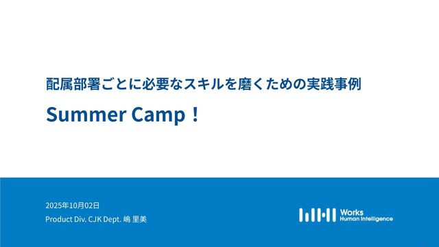 © 2025 Works Human Intelligence Co., Ltd. 2025年10⽉02⽇ 配属部署ごとに必要なスキルを磨くための実践事例 Summer