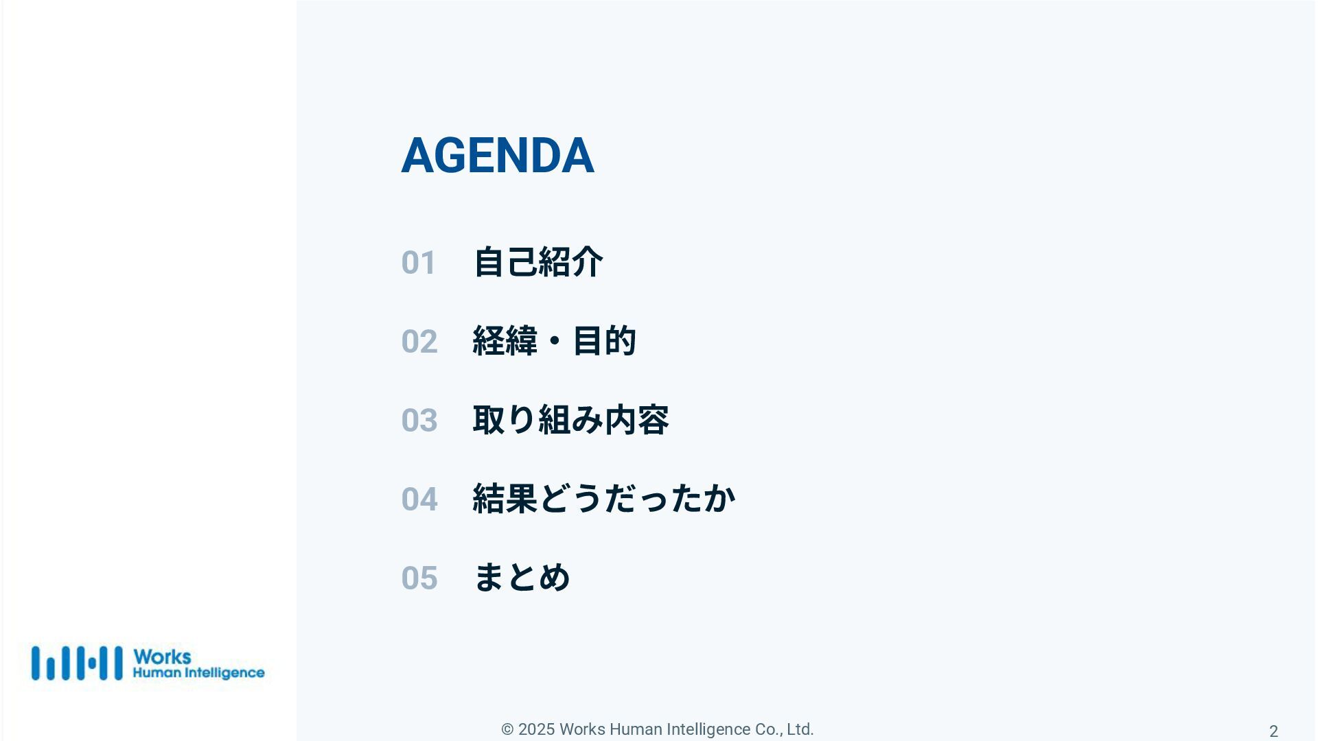 © 2025 Works Human Intelligence Co., Ltd. AGENDA 2 01