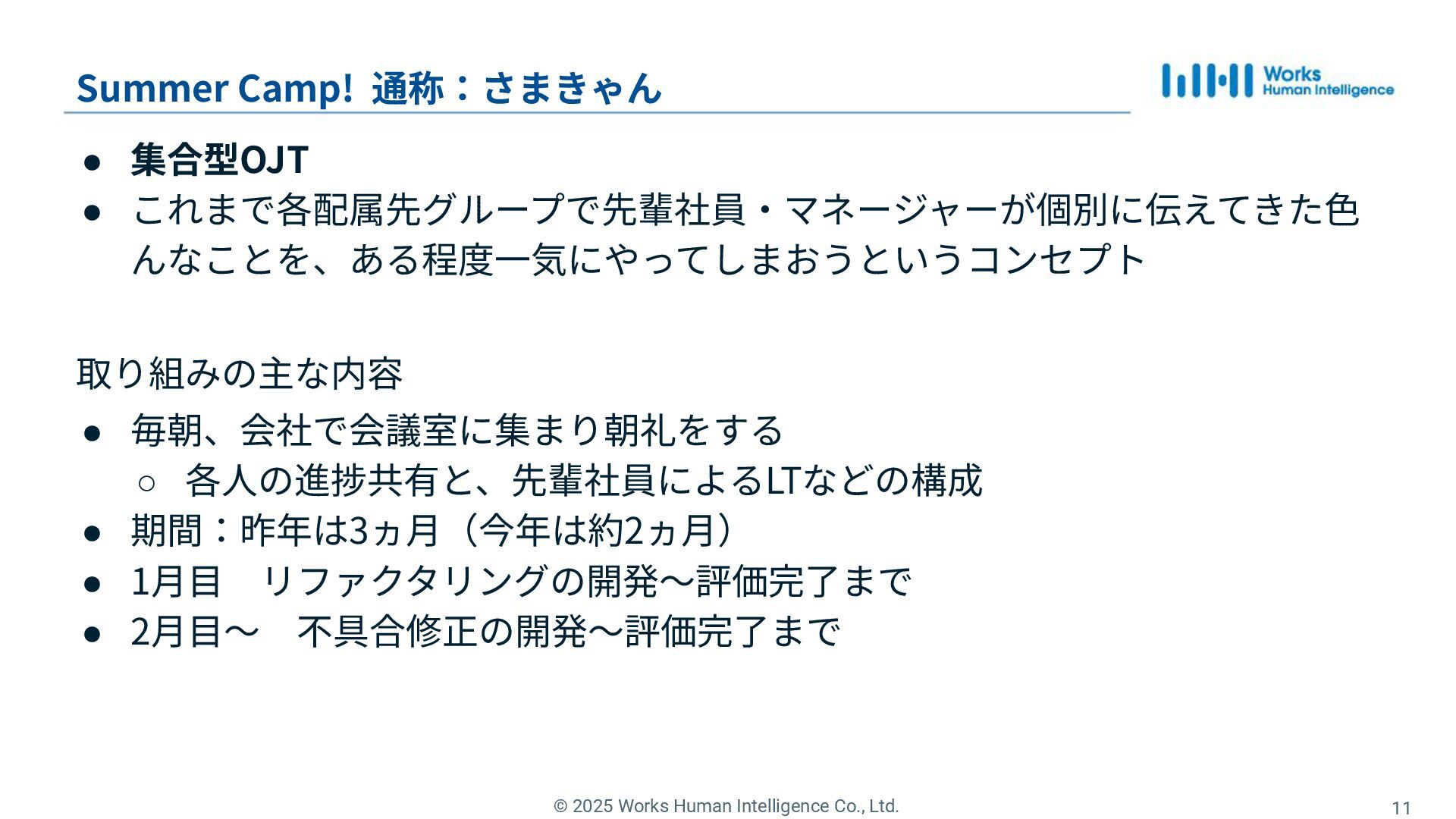 © 2025 Works Human Intelligence Co., Ltd. 11 Summer Camp!