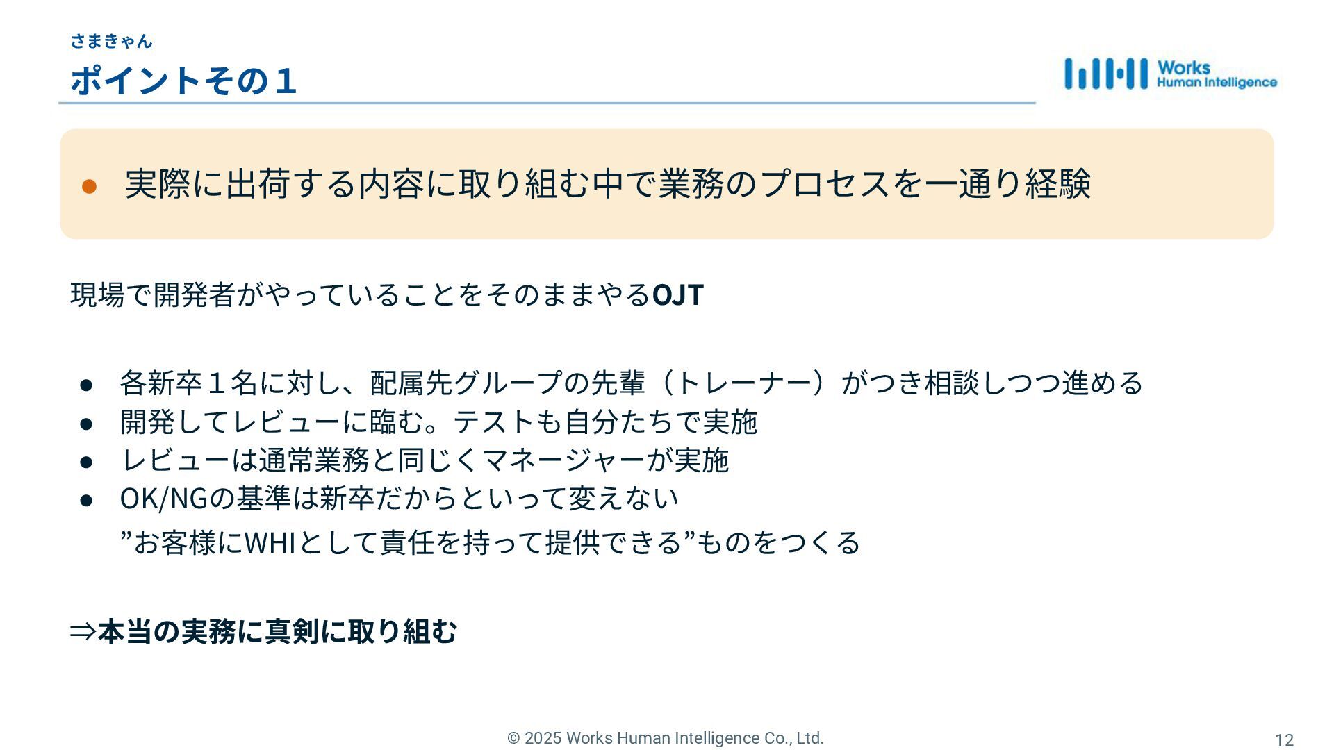 © 2025 Works Human Intelligence Co., Ltd. 12 ポイントその1 さまきゃん