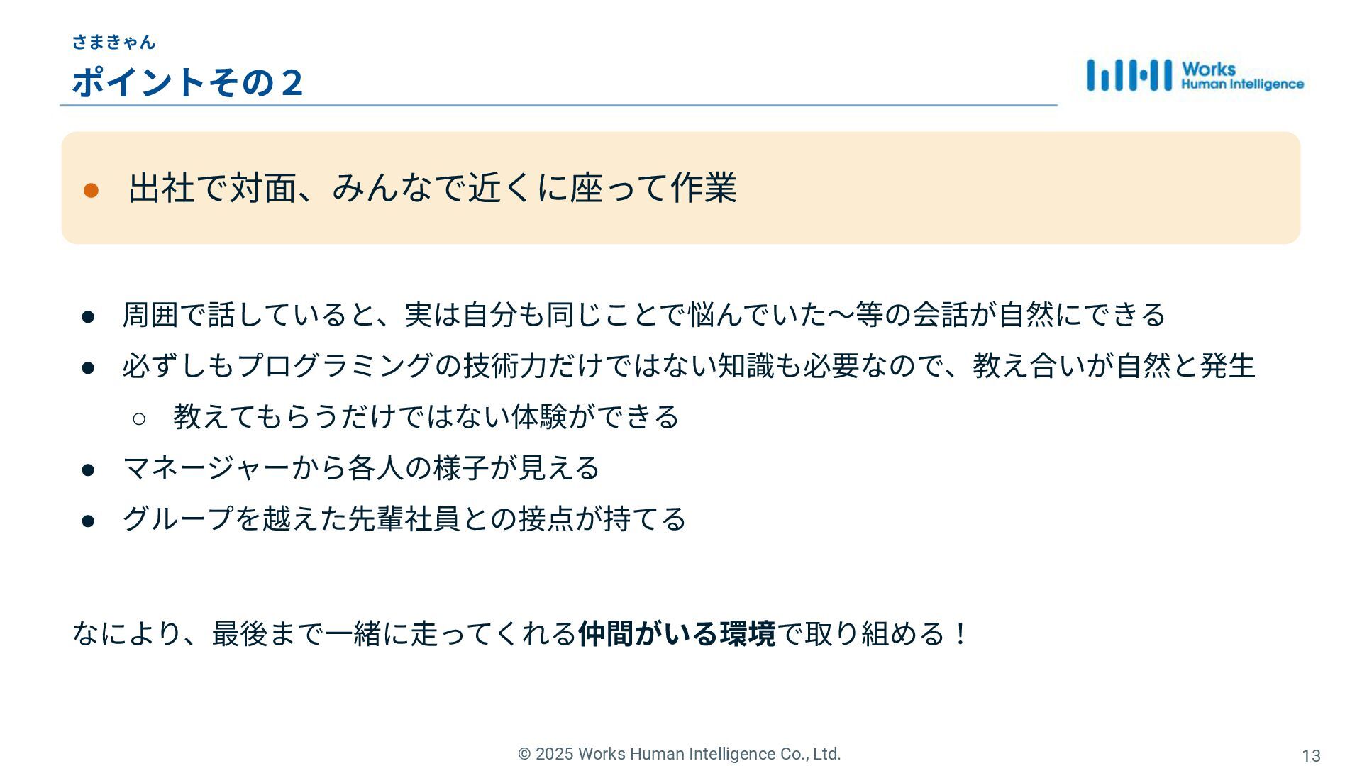 © 2025 Works Human Intelligence Co., Ltd. 13 ポイントその2 さまきゃん
