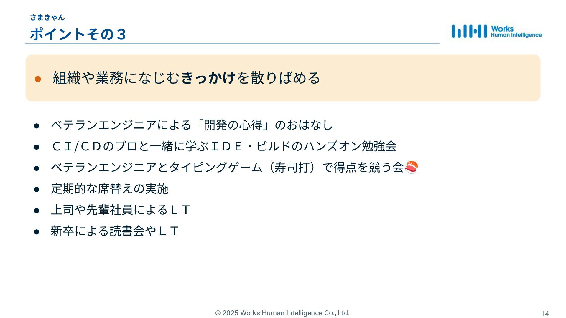 © 2025 Works Human Intelligence Co., Ltd. 14 ポイントその3 さまきゃん