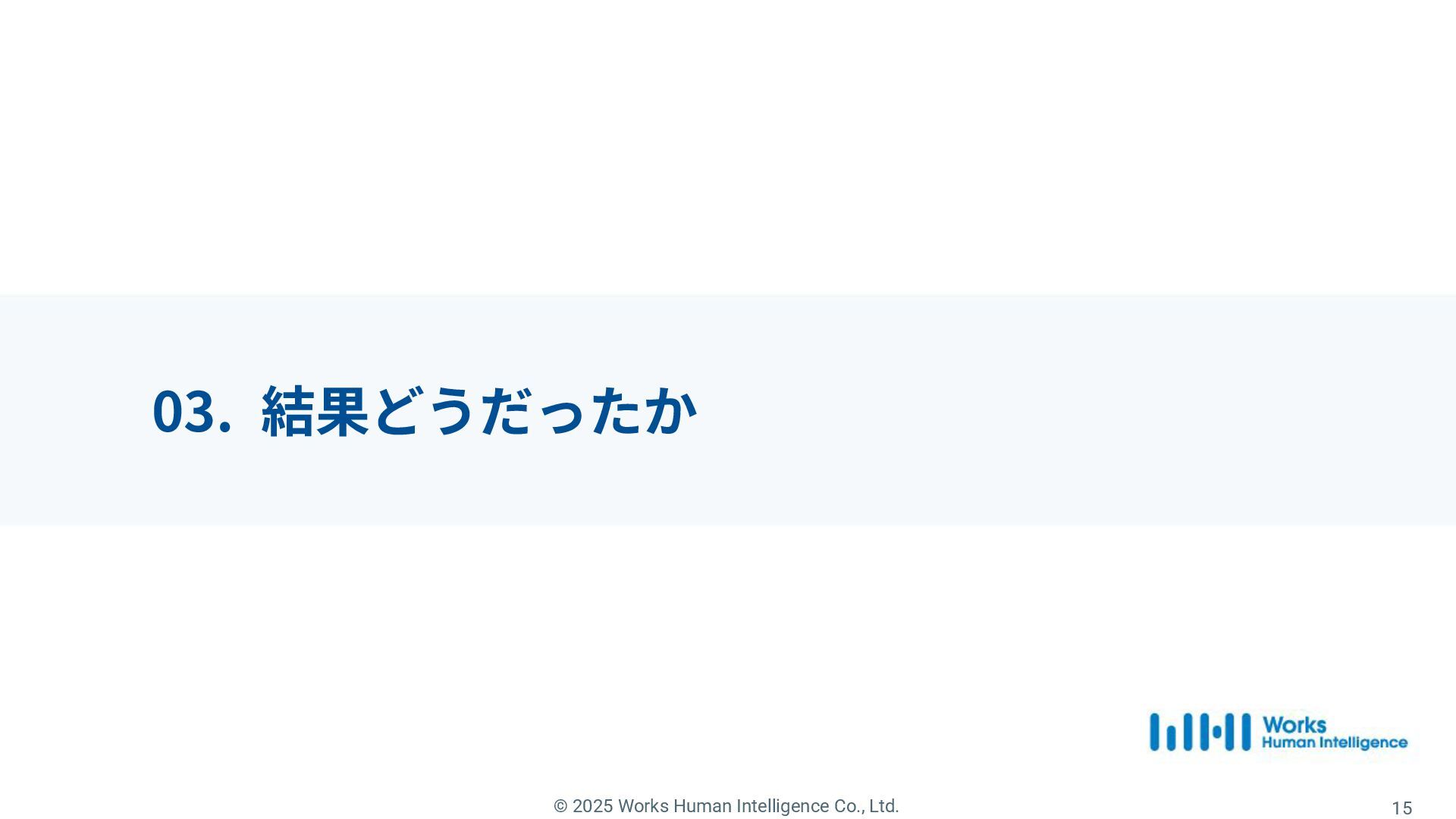 © 2025 Works Human Intelligence Co., Ltd. 15 03. 結果どうだったか