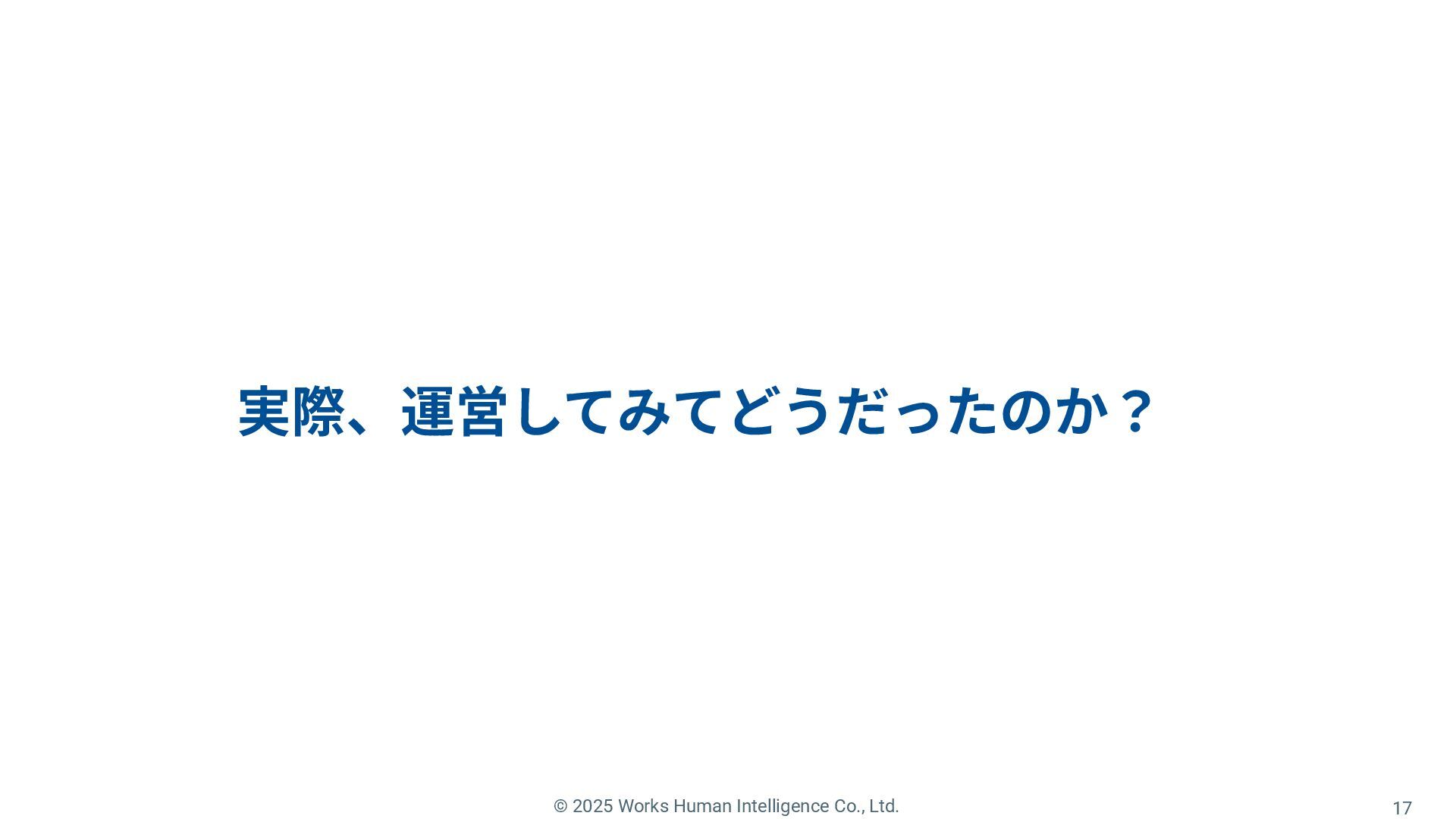 © 2025 Works Human Intelligence Co., Ltd. 17 実際、運営してみてどうだったのか?