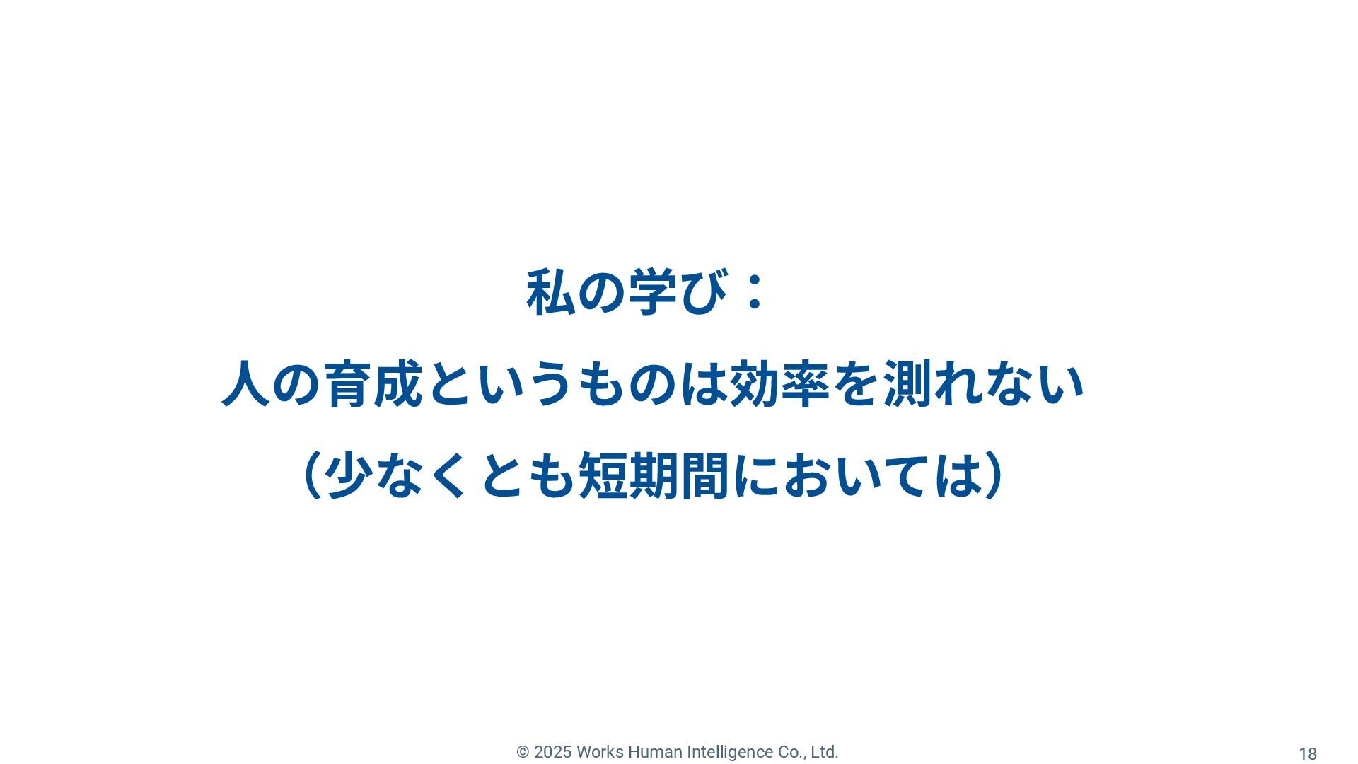 © 2025 Works Human Intelligence Co., Ltd. 18 私の学び: ⼈の育成というものは効率を測れない