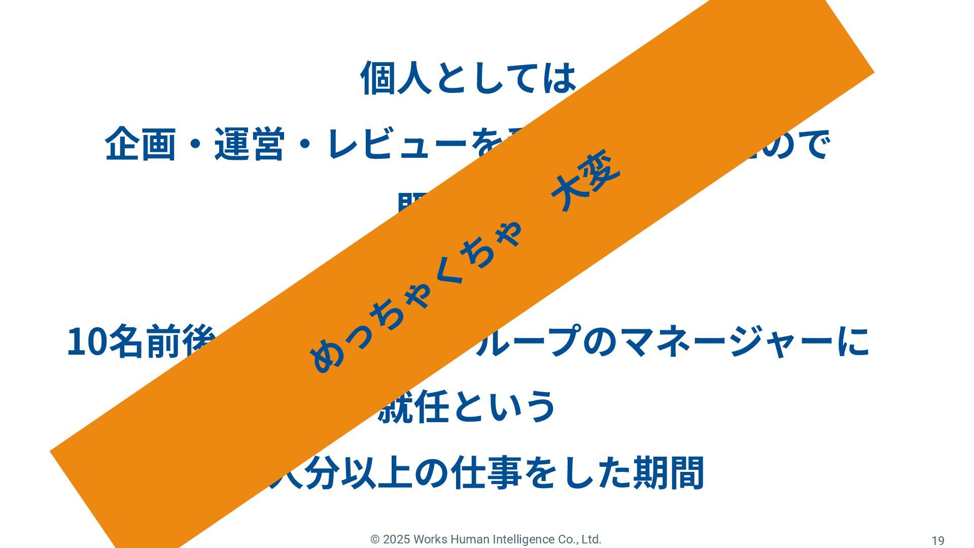 © 2025 Works Human Intelligence Co., Ltd. 19 個⼈としては 企画‧運営‧レビューを受け持っていたので