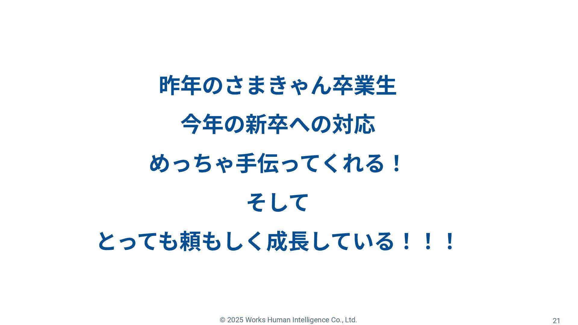 © 2025 Works Human Intelligence Co., Ltd. 21 昨年のさまきゃん卒業⽣ 今年の新卒への対応