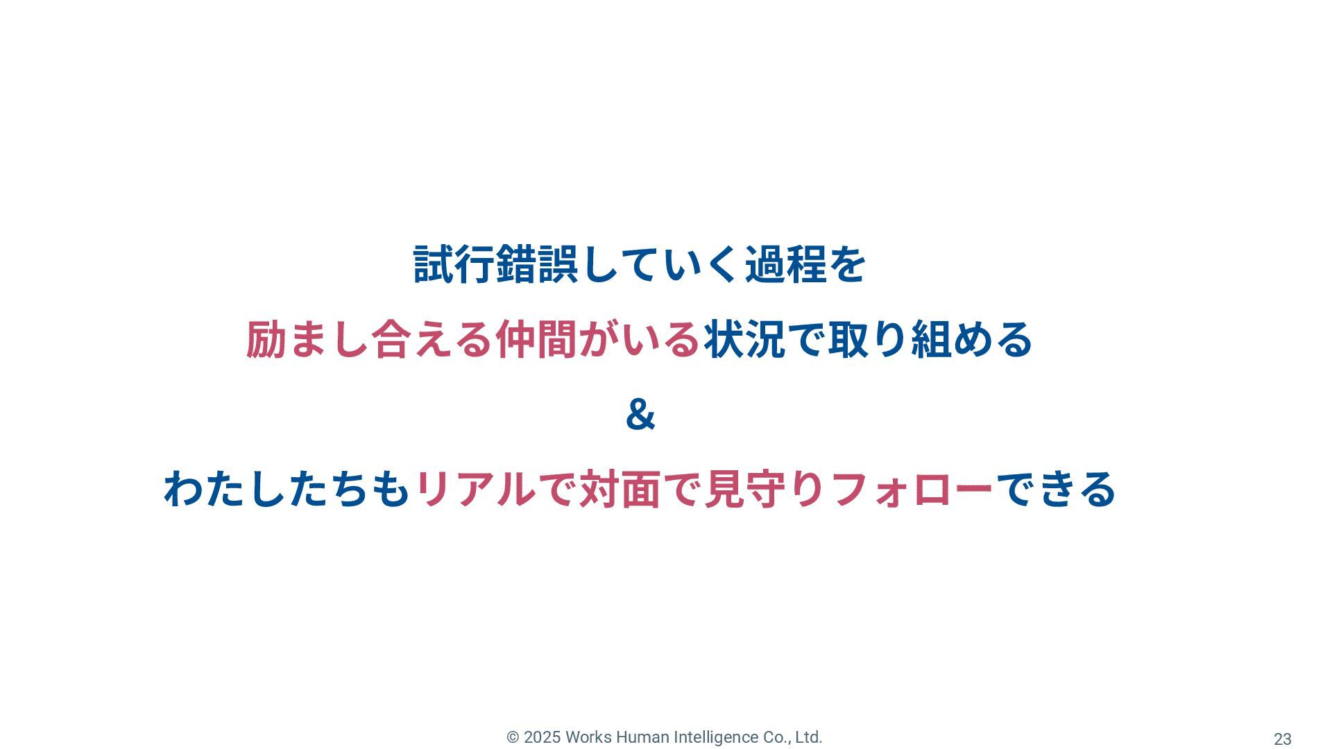 © 2025 Works Human Intelligence Co., Ltd. 23 試⾏錯誤していく過程を 励まし合える仲間がいる状況で取り組める