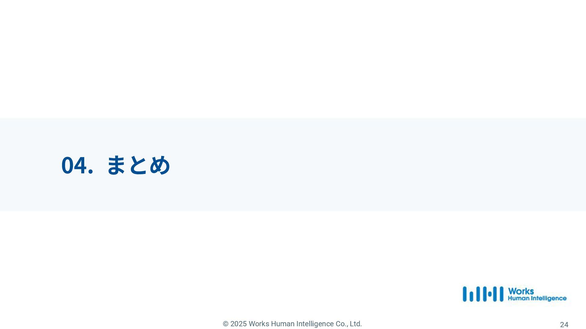 © 2025 Works Human Intelligence Co., Ltd. 24 04. まとめ