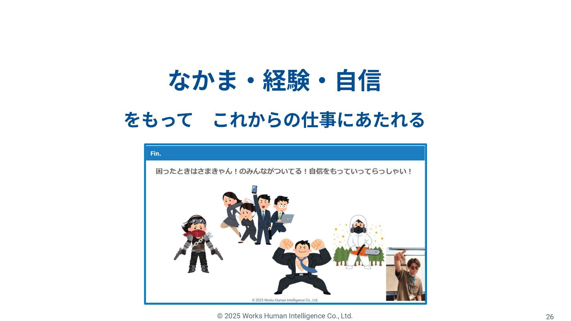 © 2025 Works Human Intelligence Co., Ltd. 26 なかま‧経験‧⾃信 をもって これからの仕事にあたれる