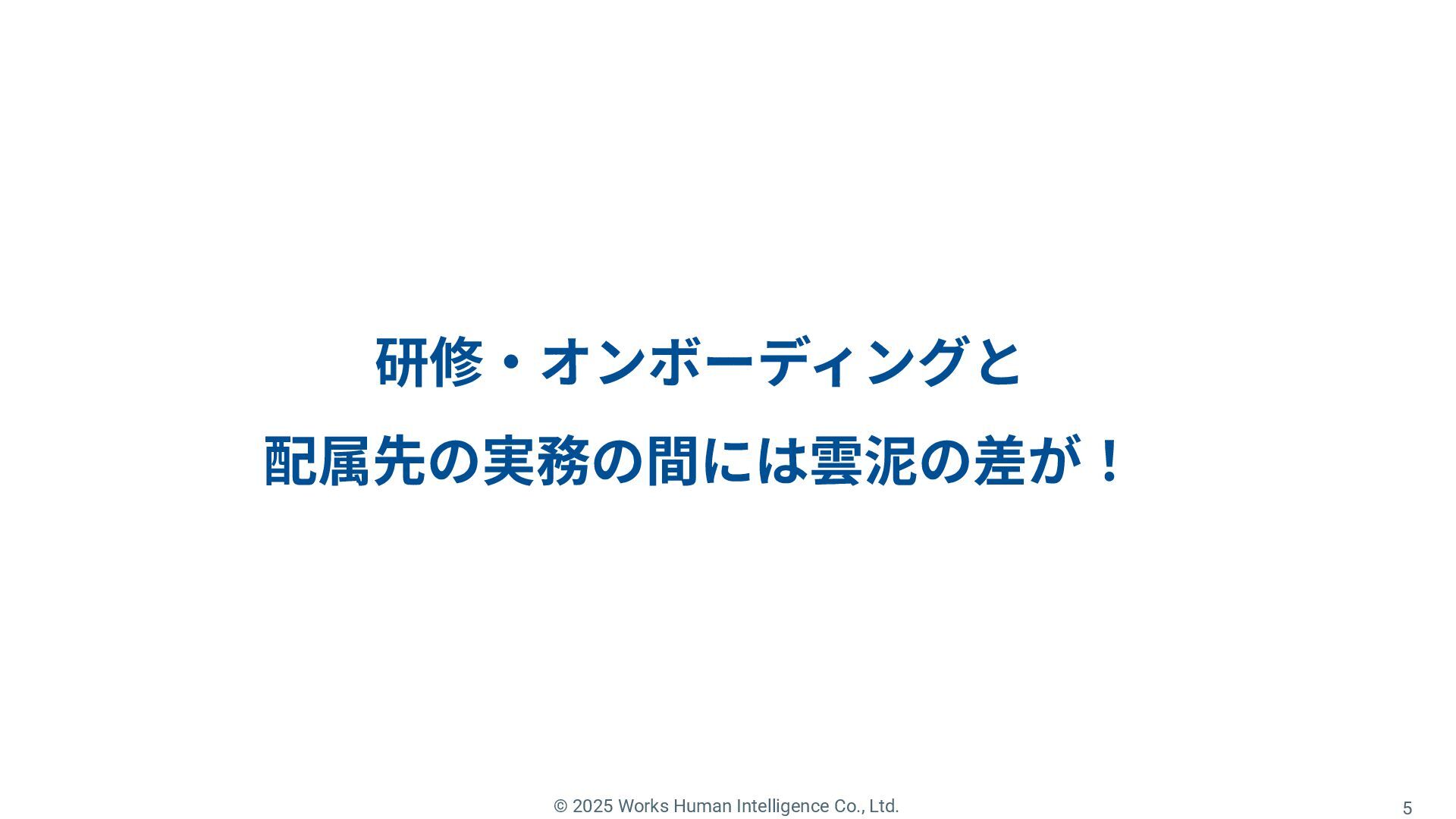 © 2025 Works Human Intelligence Co., Ltd. 5 研修‧オンボーディングと 配属先の実務の間には雲泥の差が!