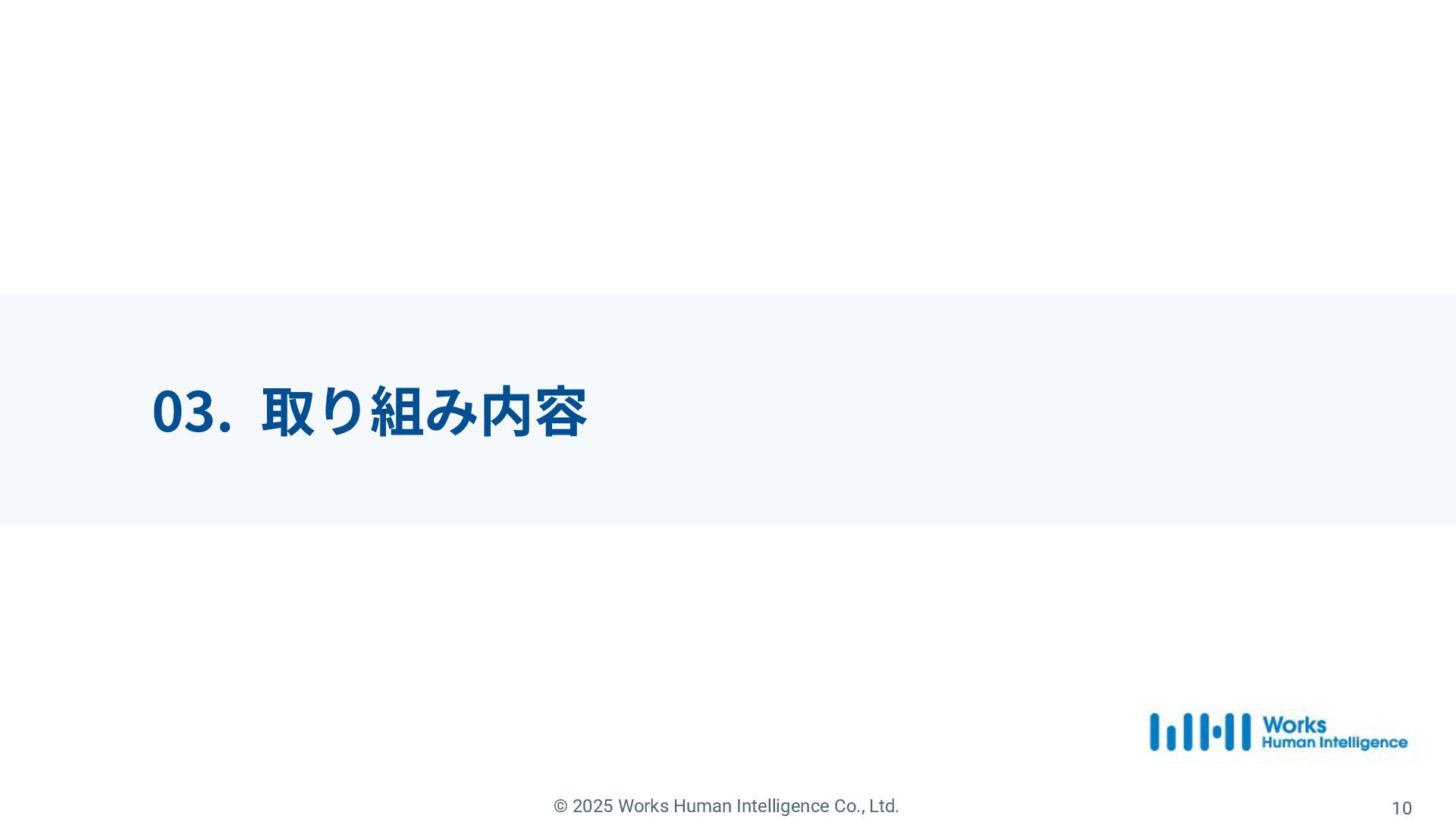 © 2025 Works Human Intelligence Co., Ltd. 10 03. 取り組み内容