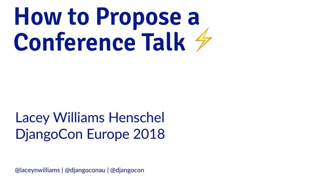 How to Propose a Conference Talk Lacey Williams Henschel DjangoCon