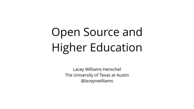 What does open source have to do with higher education? Lacey Williams Henschel has been a developer for the University of Texas at Austin for 4 years, and she’s worked with open source technologies, home-grown software, and closed systems. The open source and higher education communities share some core values: transparency, responsibility to our communities and users, and a consistent need to maximize effectiveness even with low budgets. But developers in higher education face some unique challenges in using open source software and contributing to open source projects. How can the open source world better serve the higher education community, and encourage those developers to come aboard?