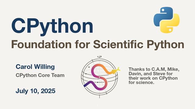 2025 CPython Core Team Thanks to C.A.M, Mike, Davin, and Steve for their work on CPython for science.