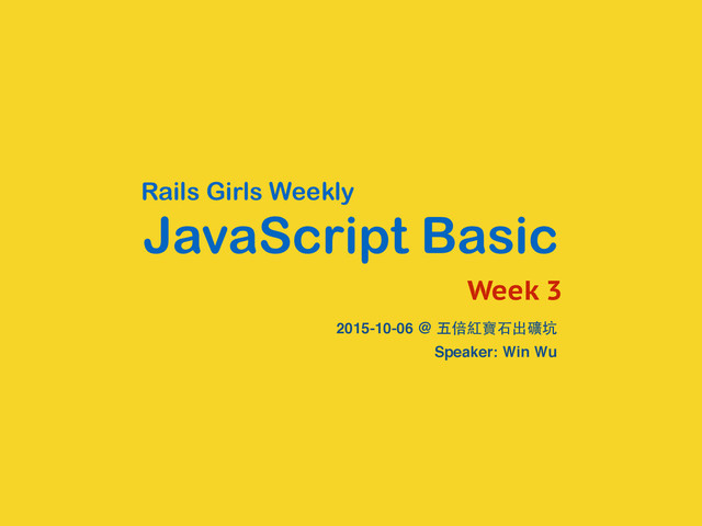 JavaScript Basic Rails Girls Weekly 2015-10-06 @ 五倍紅寶⽯石出礦坑 Speaker: Win