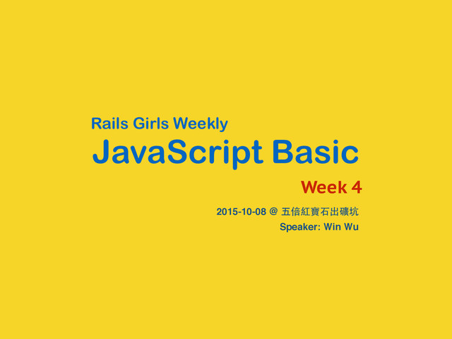 JavaScript Basic Rails Girls Weekly 2015-10-08 @ 五倍紅寶⽯石出礦坑 Speaker: Win