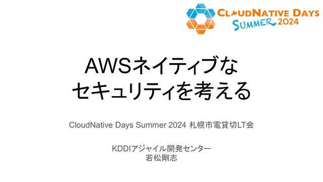 AWSネイティブな セキュリティを考える CloudNative Days Summer 2024 札幌市電貸切LT会 KDDIアジャイル開発センター 若松剛志