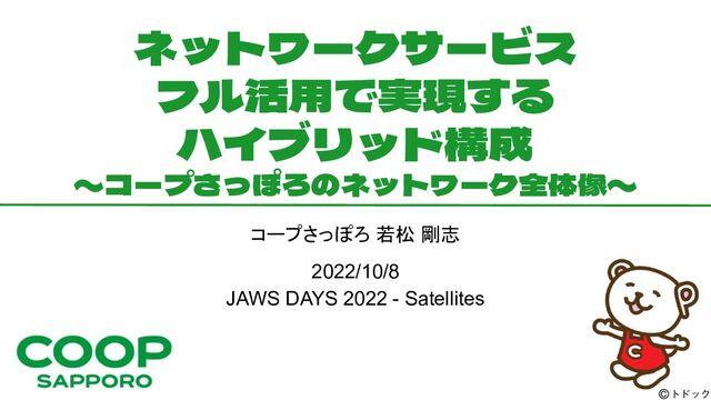 ネットワークサービス フル活用で実現する ハイブリッド構成 〜コープさっぽろのネットワーク全体像〜 コープさっぽろ 若松 剛志 2022/10/8 JAWS DAYS