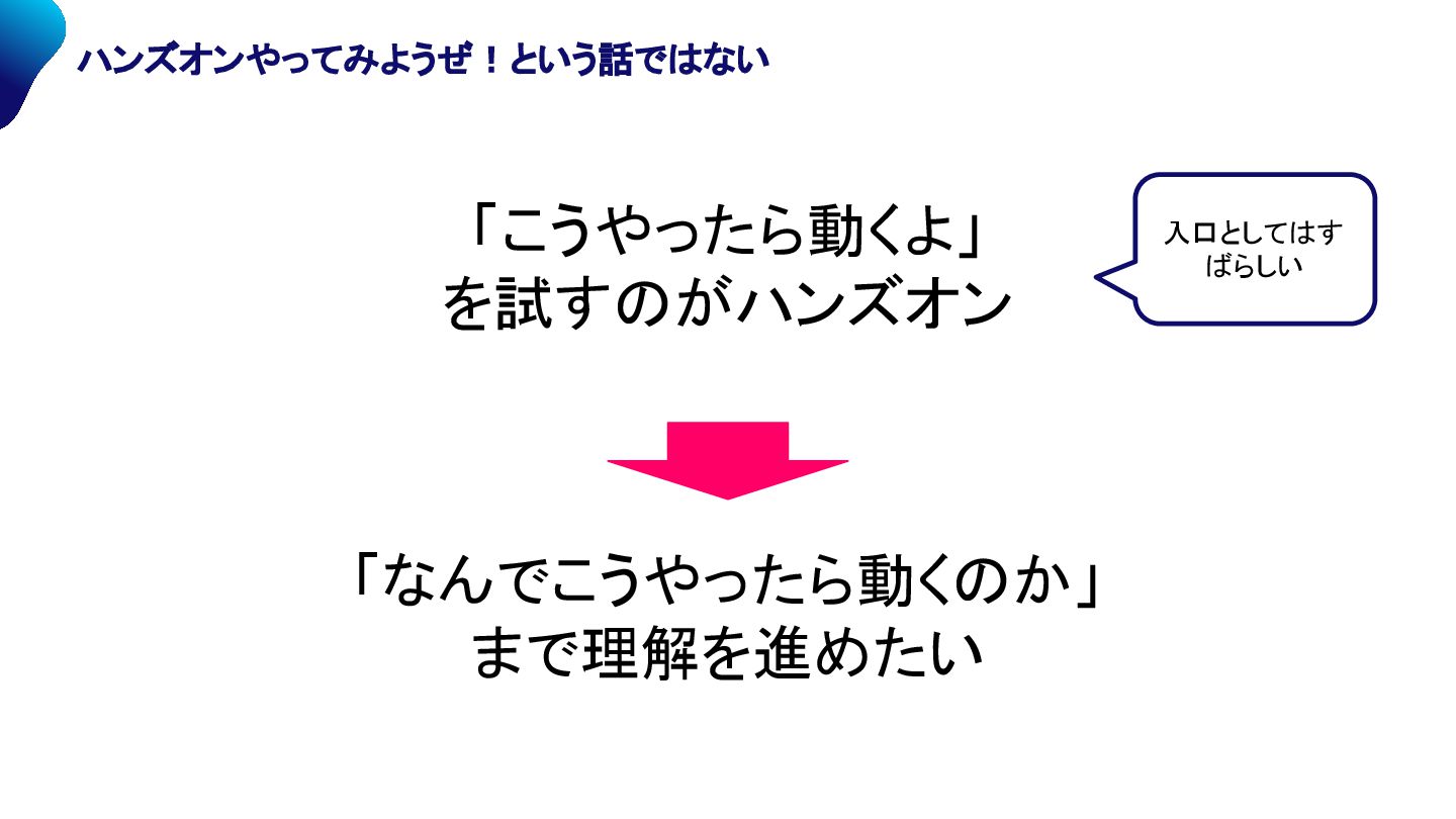 「こうやったら動くよ」 を試すのがハンズオン 入口としてはす ばらしい