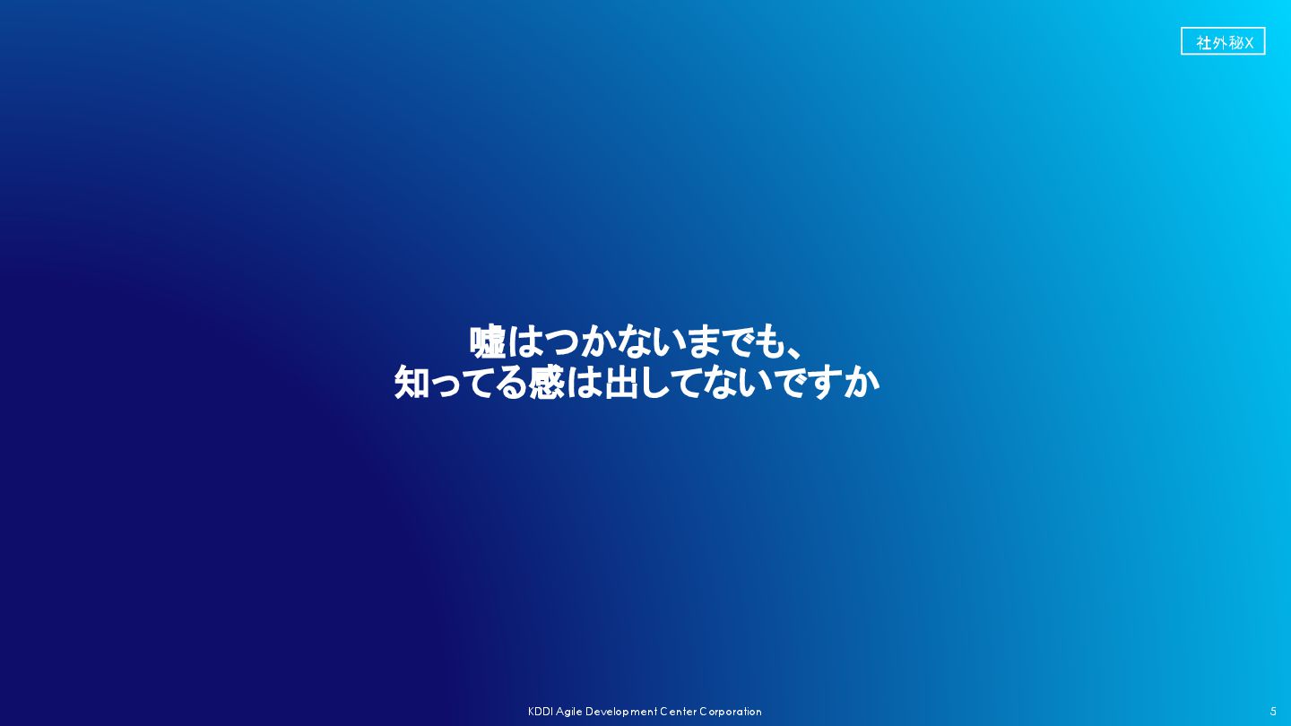 社外秘X 5 KDDI Agile Development Center Corporation 嘘はつかないまでも、 知ってる感は出してないですか