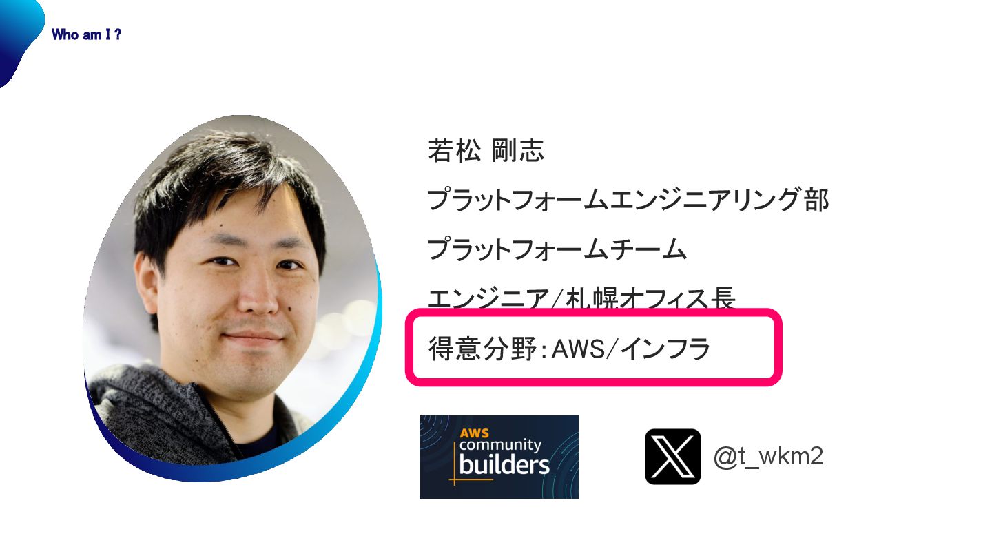 若松 剛志 プラットフォームエンジニアリング部 プラットフォームチーム エンジニア/札幌オフィス長 得意分野:AWS/インフラ @t_wkm2