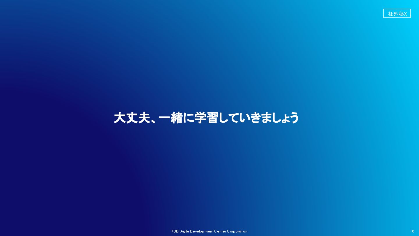 社外秘X 10 KDDI Agile Development Center Corporation 大丈夫、一緒に学習していきましょう