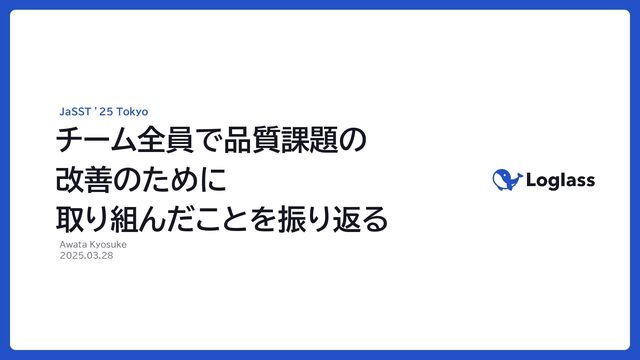 0 チーム全員で品質課題の 改善のために 取り組んだことを振り返る JaSST ’25 Tokyo Awata Kyosuke 2025.03.28