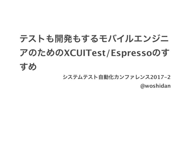 ςετ։ൃ͢ΔϞόΠϧΤϯδχ ΞͷͨΊͷXCUITest/Espressoͷ͢ ͢Ί γεςϜςετࣗಈԽΧϯϑΝϨϯε2017-2 @woshidan