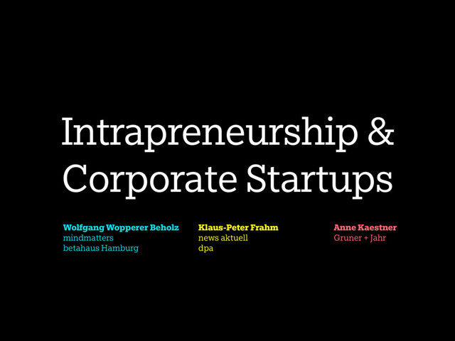 1. Intrapreneurship & Corporate Startups Wolfgang Wopperer Beholz mindmatters