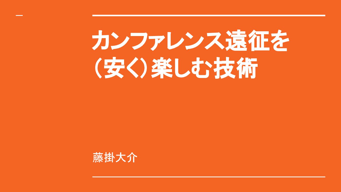 カンファレンス遠征を (安く)楽しむ技術 藤掛大介