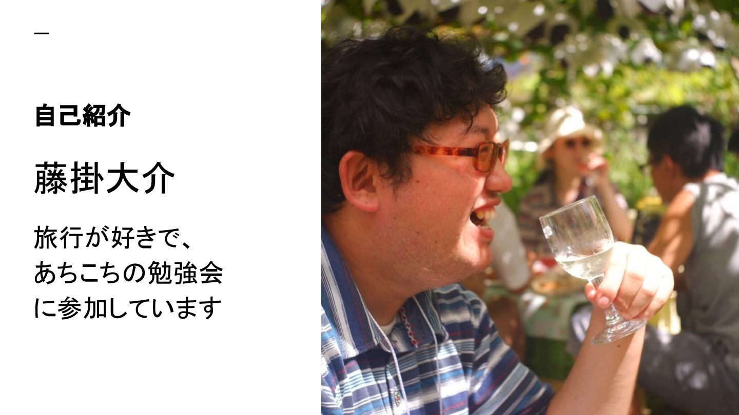 自己紹介 藤掛大介 旅行が好きで、 あちこちの勉強会 に参加しています