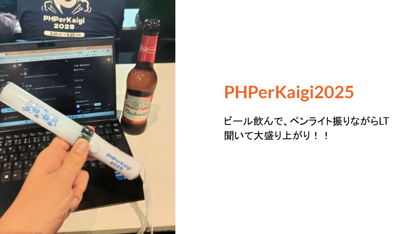 PHPerKaigi2025 ビール飲んで、ペンライト振りながらLT 聞いて大盛り上がり!!