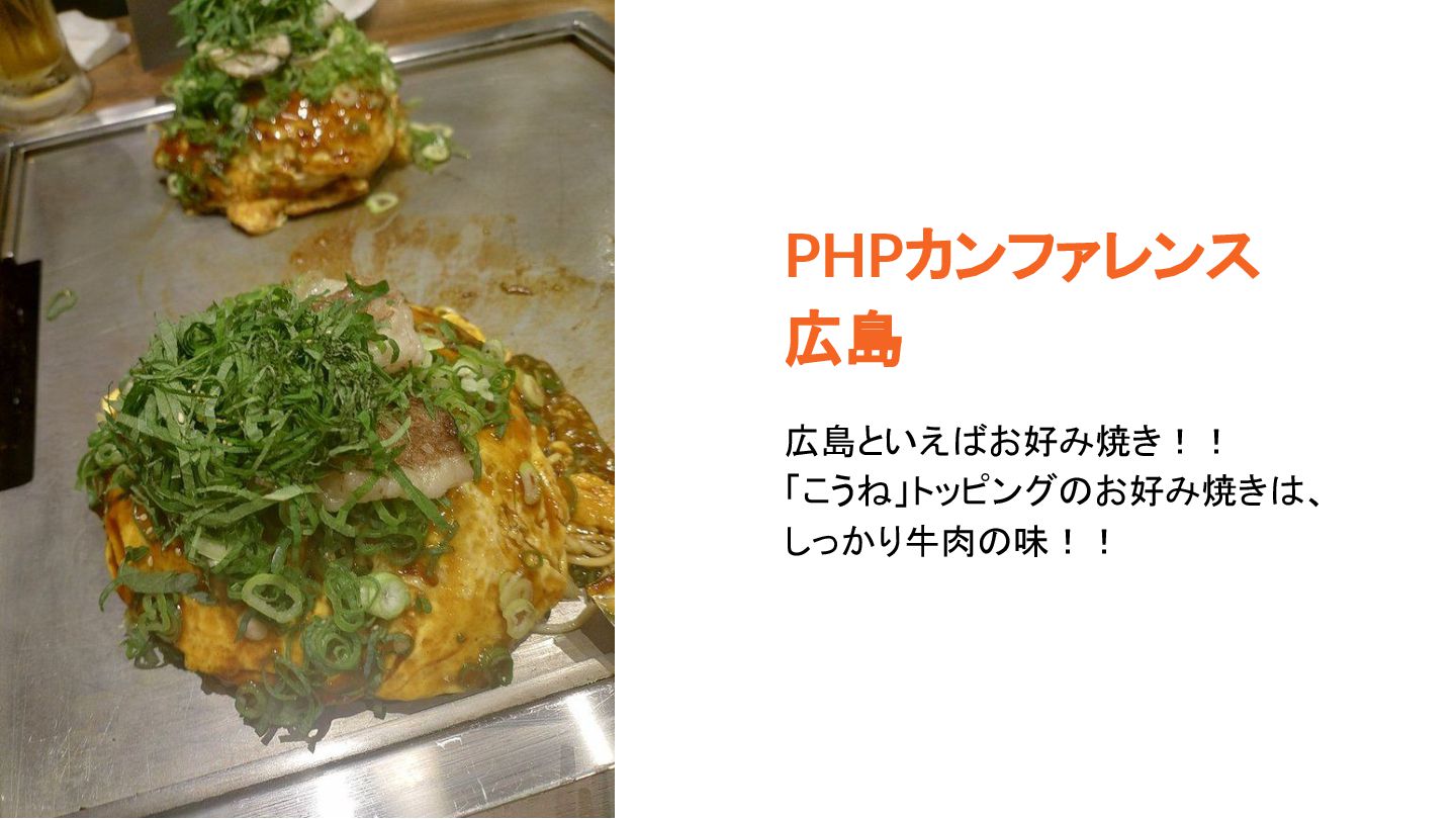 PHPカンファレンス 広島 広島といえばお好み焼き!! 「こうね」トッピングのお好み焼きは、 しっかり牛肉の味!!