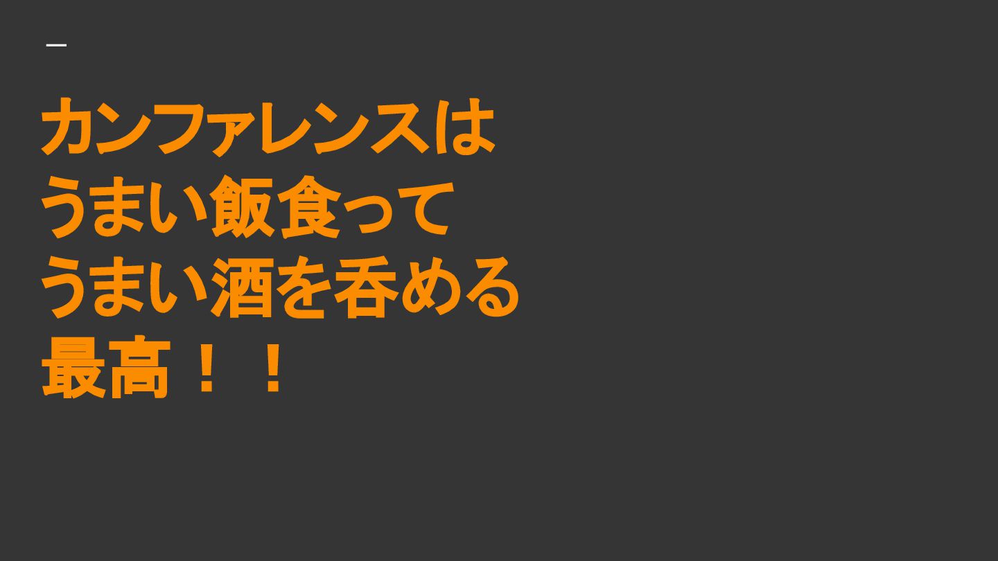 カンファレンスは うまい飯食って うまい酒を呑める 最高!!
