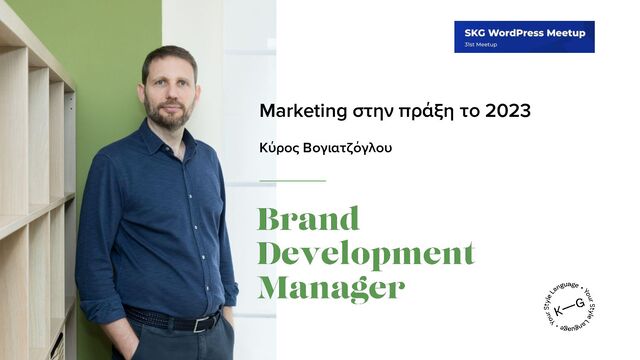 Η παρουσίαση "Marketing στην Πράξη το 2023" από τον Κύρο Βογιατζόγλου εστιάζει στις σύγχρονες στρατηγικές μάρκετινγκ για την ενίσχυση της online παρουσίας και τη σύνδεση με το κοινό. Αναδεικνύει τη σημασία της κατανόησης των συνηθειών του κοινού, όπως η συμμετοχή σε κοινότητες και η αναζήτηση έμπνευσης μέσω πλατφορμών όπως TikTok, YouTube, και Instagram. Τονίζεται η αξία της συνέπειας, της ευελιξίας, και της επικοινωνίας για την καλλιέργεια εμπιστοσύνης και την επιβράβευση της πιστότητας των πελατών.