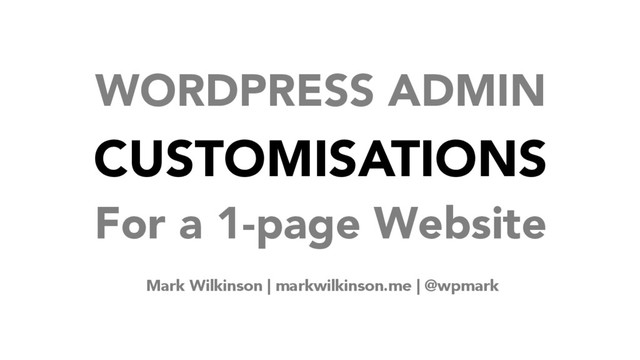 Sometimes we build WordPress sites that are just 1 pagers. These are quite popular at the moment. We spend a lot of time, making the front end experience exciting, with features such a parallax scrolling etc. However we often neglect the admin leaving it as the default experience. In this talk I outline how I have removed a lot of the bloated admin interface which is not needed for a 1 page WordPress site making the editor experience much better.