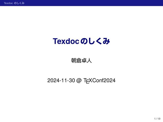 TexdocはTeX Live公式のドキュメント検索ツールです。TeX Liveは世界で最も普及しているTeXディストリビューションの1つで、その構成物について充実したドキュメントを備えることを特長の1つとしています。TexdocはそのTeX Liveのもつ膨大なドキュメントの中から、ユーザが求めるドキュメントをすばやく見つけ出すために開発されたもので、オンラインサービスtexdoc.orgに組み込まれるなど世界中のTeXユーザに利用されています。TexdocはTeX Liveの根幹をなすいくつかの技術的基盤―すなわちKpathseaライブラリ、TDS、TLPデータベース―を巧みに利用することで、ユーザの求めるドキュメントへの軽快なアクセスを実現しています。また、発表者は2017年から現在までTexdocの主要メンテナを務めており、TeX Liveに深く根ざすシステムのメンテナンスに関する知見を蓄積してきました。本講演では、こうしたTexdocのしくみやメンテナンス手法の解説をケーススタディとして、TeX Liveインフラあるいは一般のTeXエコシステムを活かしたツール開発に係る知見を共有し、新規参入者の開発意欲を刺激することを目指します。
