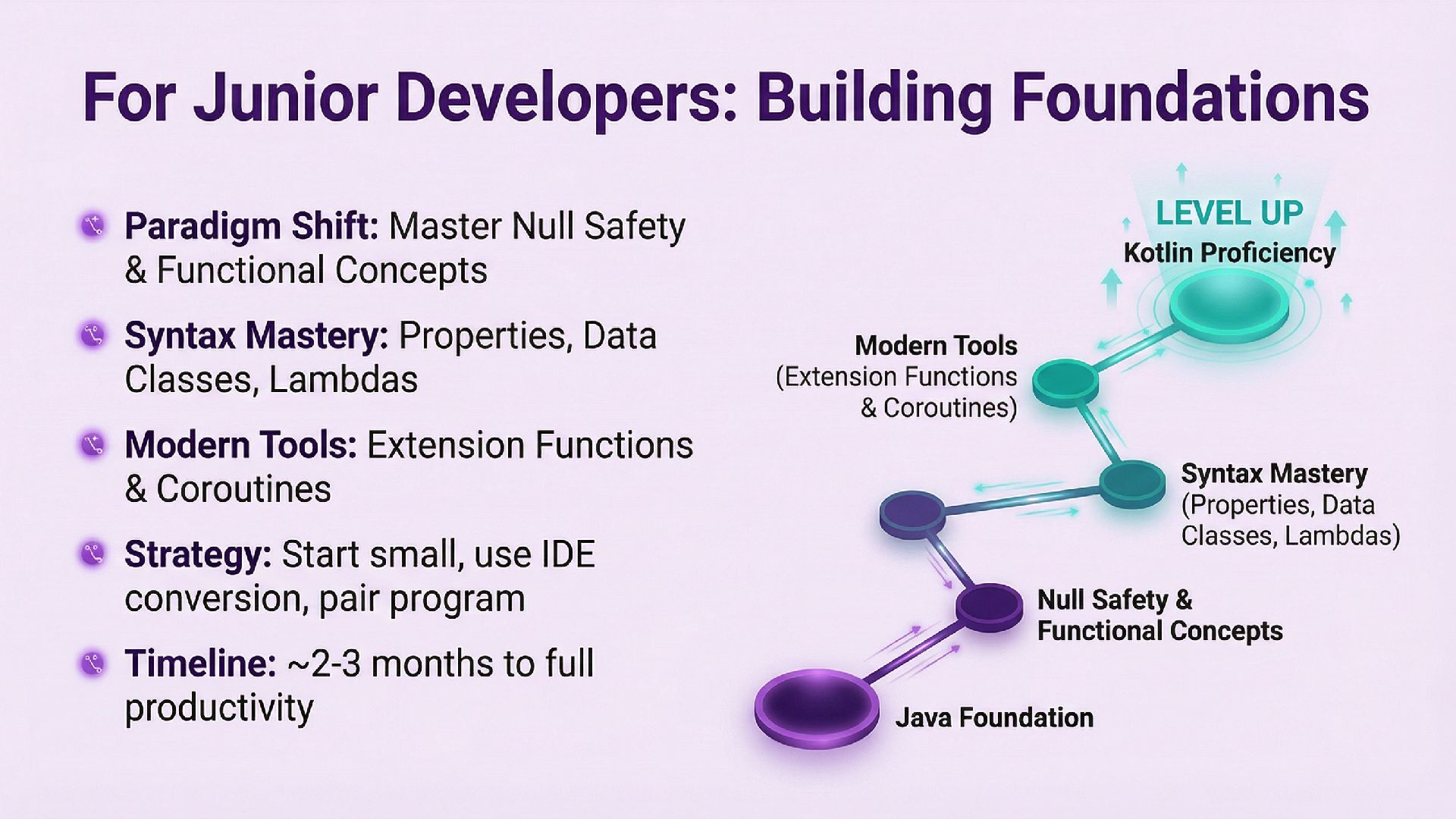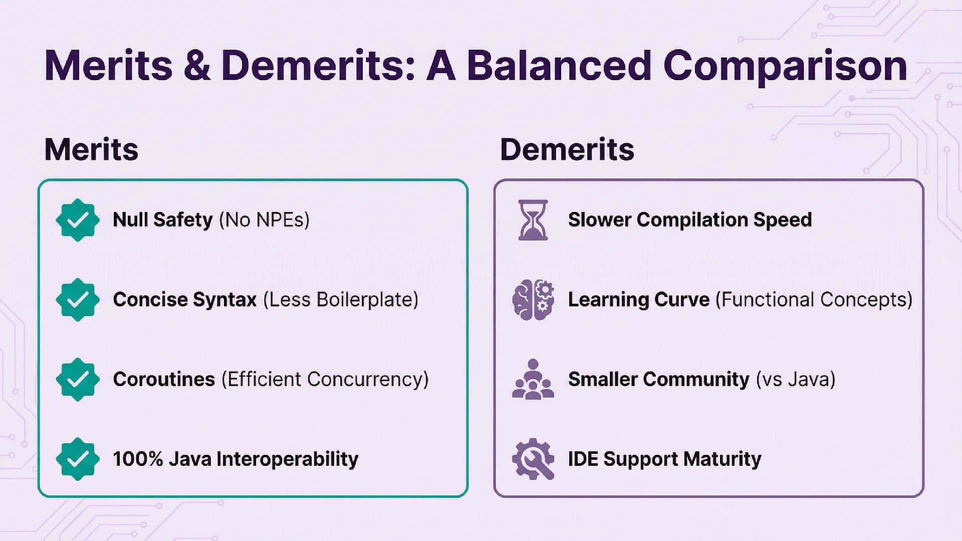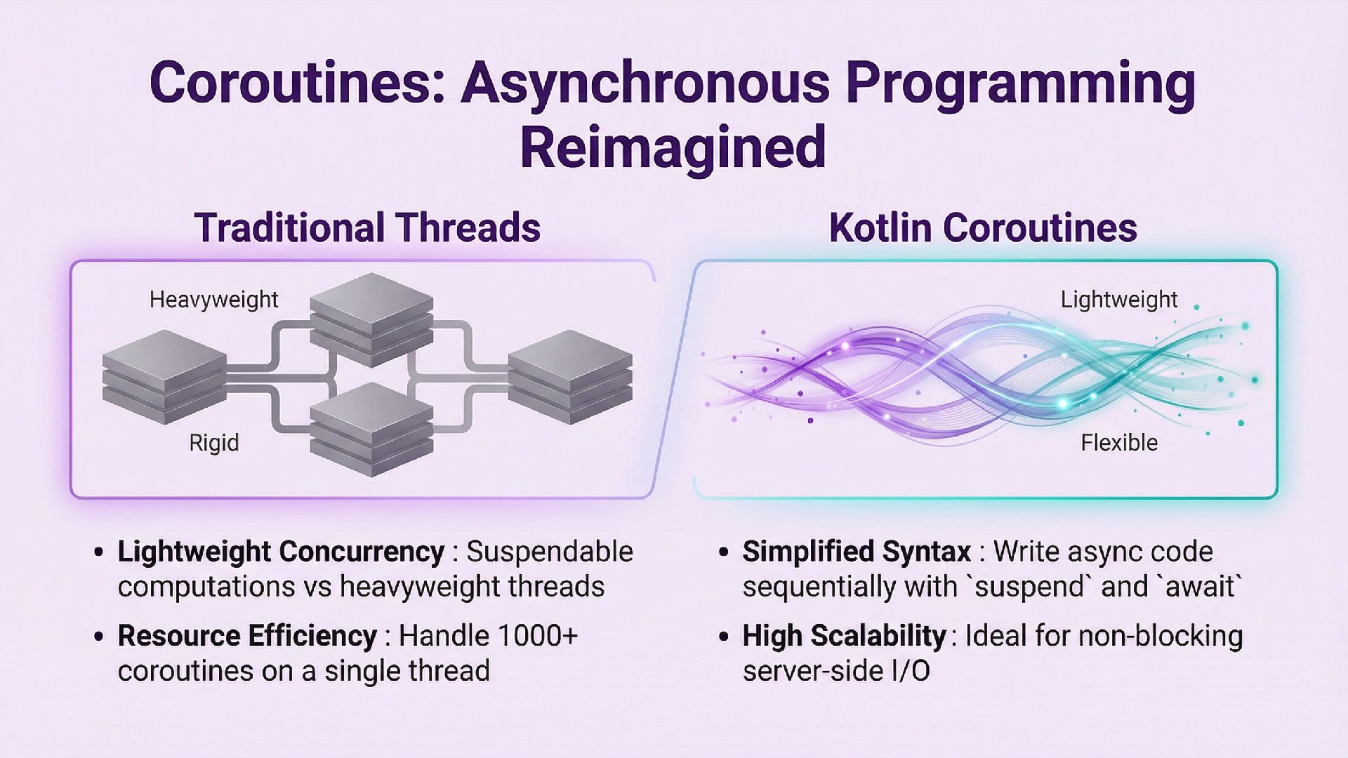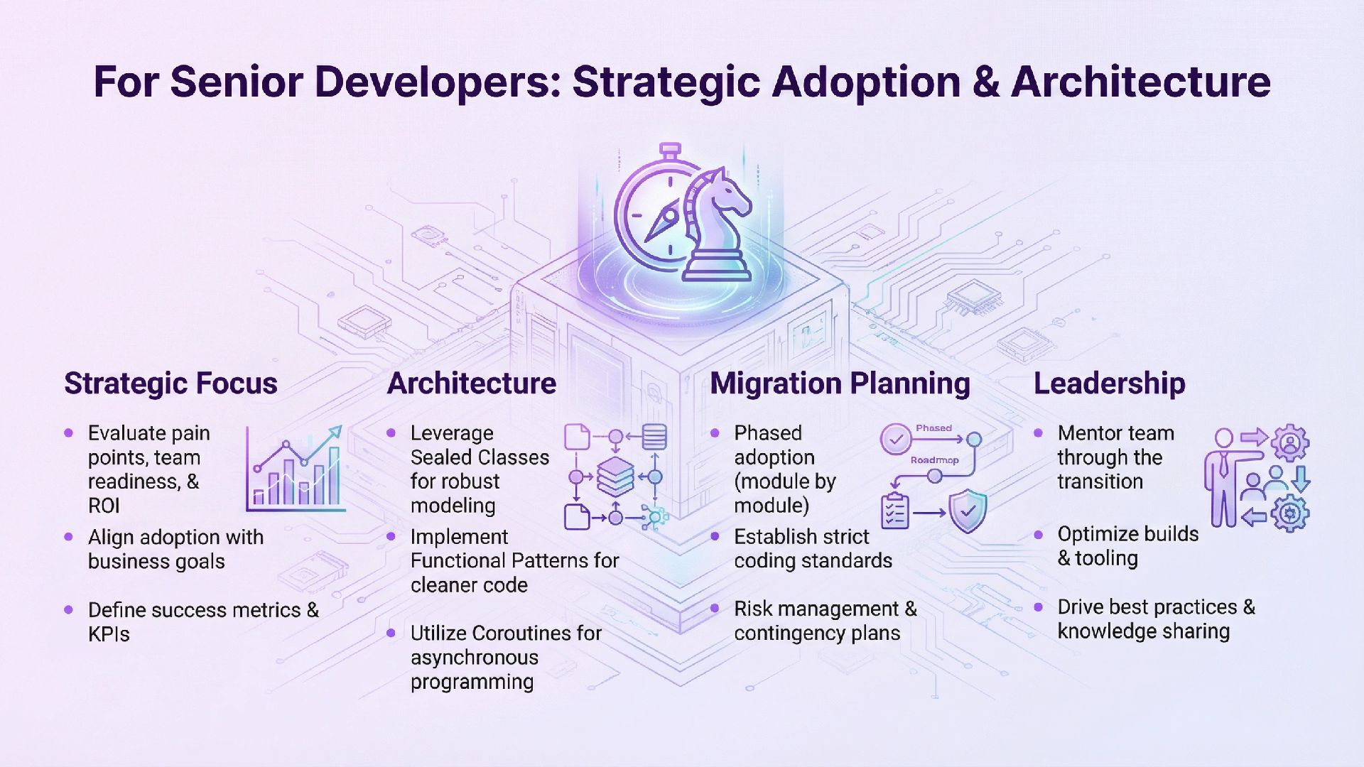 This presentation provides a comprehensive guide for migrating server-side applications from Java to Kotlin. It highlights Kotlin's key advantages, such as null safety, concise syntax, and efficient concurrency with coroutines, while emphasizing its 100% interoperability with Java. The slides offer a balanced comparison of benefits and drawbacks, along with a practical adoption roadmap tailored for both junior and senior developers to ensure a smooth and strategic transition.