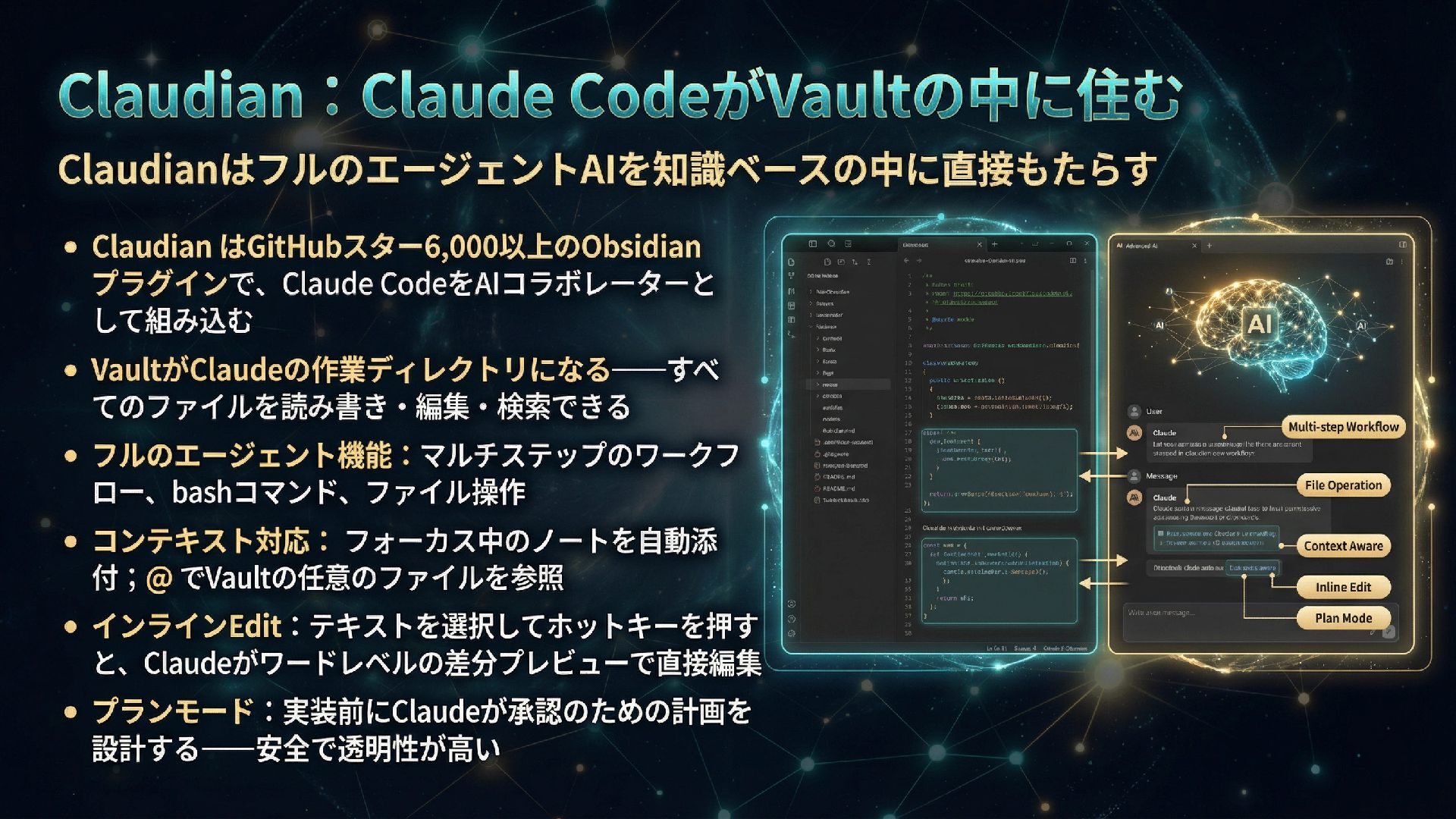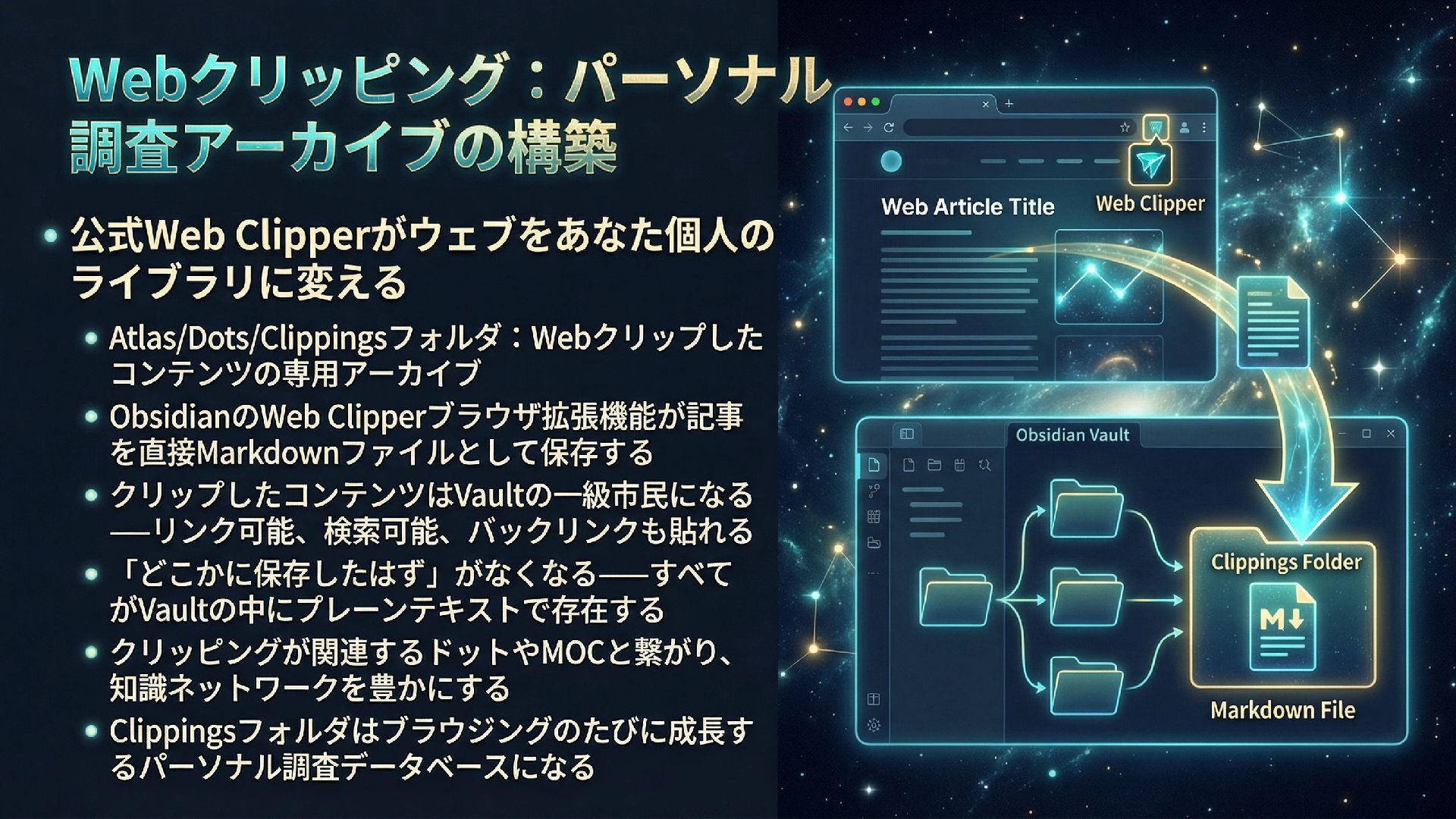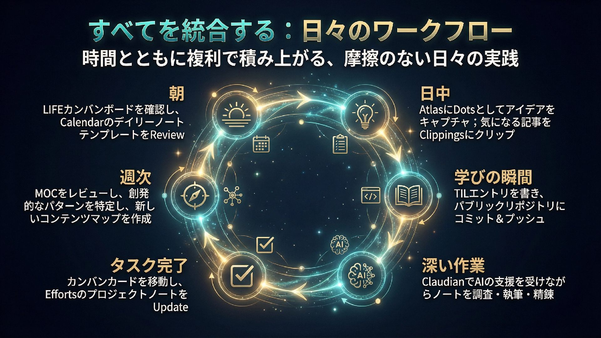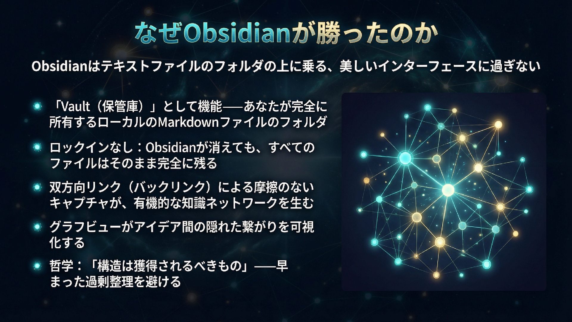 本スライドは、ObsidianとGitHub、AIを組み合わせたパーソナル知識管理システム「IdeaverseLIFE」を紹介します。「テキストに賭けよ」という哲学とACEフレームワークを基盤に、Ideaverse Lite・Webクリッピング・TILサブモジュール・GitHubカンバン・Claudianプラグインを統合し、生涯使い続けられる知識OSの構築を目指します。