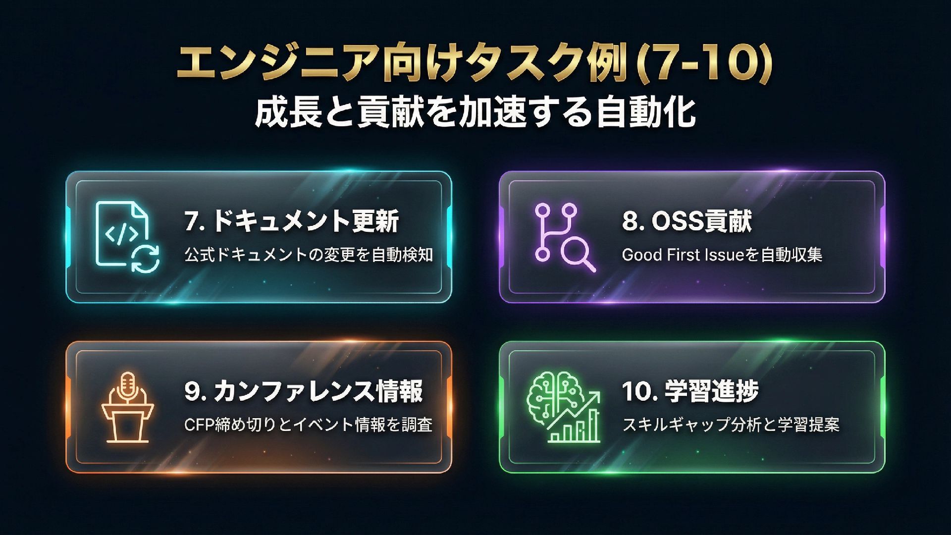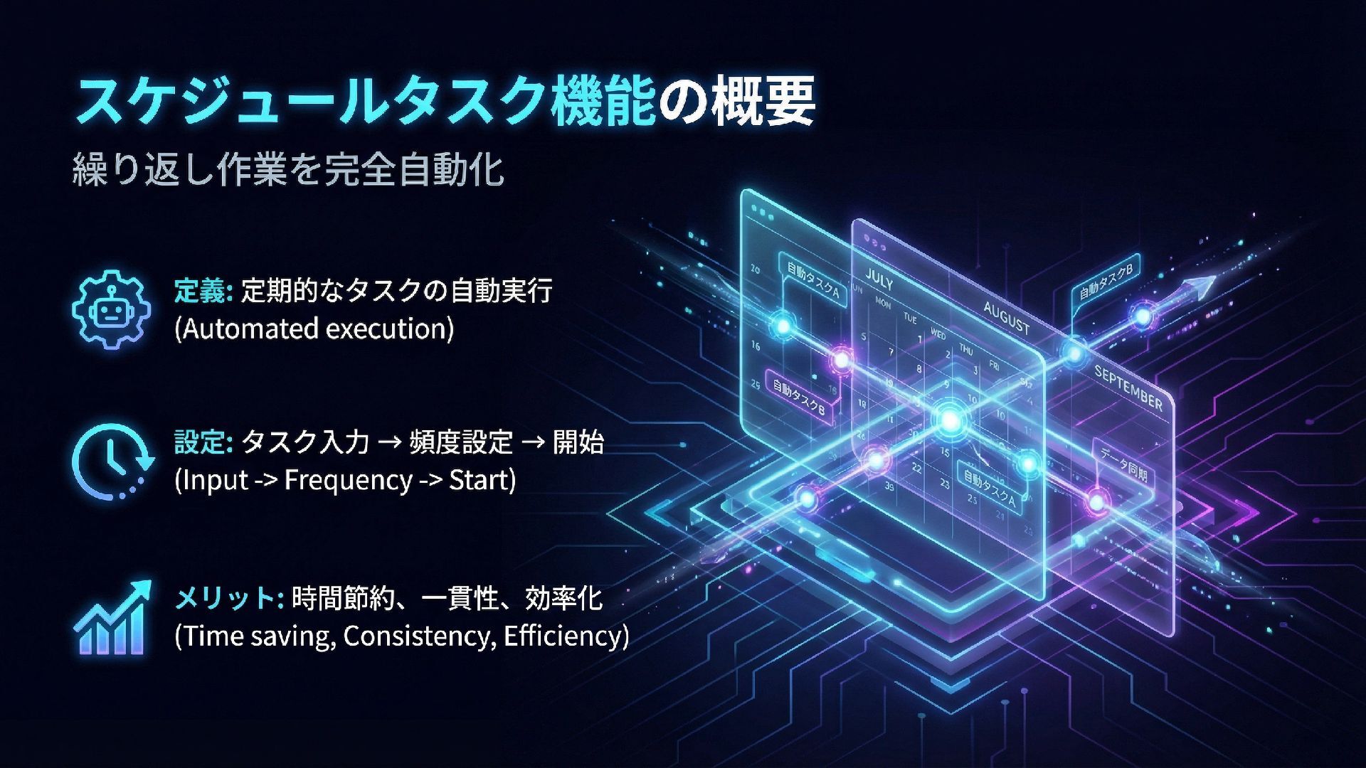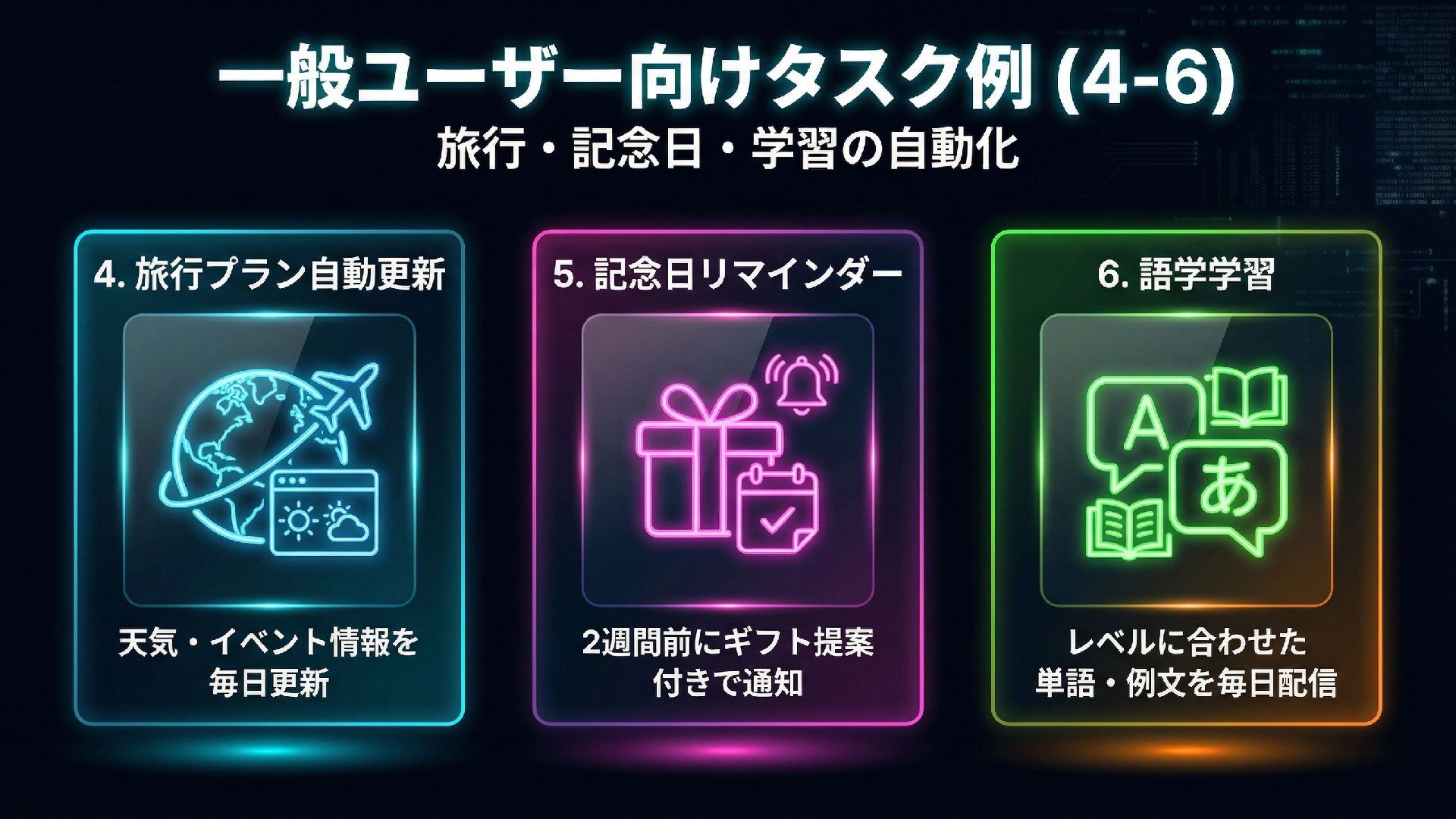 Manusは「思考」から「行動」へ橋渡しする自律型汎用AIエージェントです。Wide Research、Web/モバイル開発、Design View、データ分析など多彩な機能を備え、複雑なタスクを人間の介入なしに完遂します。2025年12月、Meta社が20億ドル以上でManusを買収し、独立運営を継続しながらMetaエコシステムとの統合が進められています。Manus 1.6 Maxでは高度な計画・問題解決能力が強化され、ユーザー満足度が19.2%向上しました。スケジュールタスク機能を活用すれば、ニュース要約や家計簿分析などの一般向けタスクから、技術トレンド収集や脆弱性チェックなどのエンジニア向けタスクまで、定期的な作業を完全自動化できます。