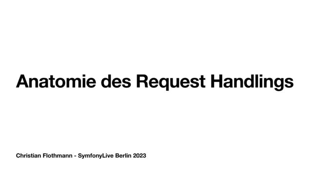 handleRaw(Request $request, int $type = self::MAIN_REQUEST): Response { // request $event = new RequestEvent($this, $request, $type); $this->dispatcher->dispatch($event, KernelEvents::REQUEST); if ($event->hasResponse()) { return $this->filterResponse($event->getResponse(), $request, $type); } // load controller if (false === $controller = $this->resolver->getController($request)) { throw new NotFoundHttpException(sprintf('Unable to find the controller for path "%s". The route is wrongly configured.', $request->getPathInfo())); } $event = new ControllerEvent($this, $controller, $request, $type); $this->dispatcher->dispatch($event, KernelEvents::CONTROLLER); $controller = $event->getController(); // controller arguments $arguments = $this->argumentResolver->getArguments($request, $controller, $event- >getControllerReflector()); $event = new ControllerArgumentsEvent($this, $event, $arguments, $request, $type); $this->dispatcher->dispatch($event, KernelEvents::CONTROLLER_ARGUMENTS); $controller = $event->getController(); Anatomie des Request Handling - SymfonyLive Berlin 2023
