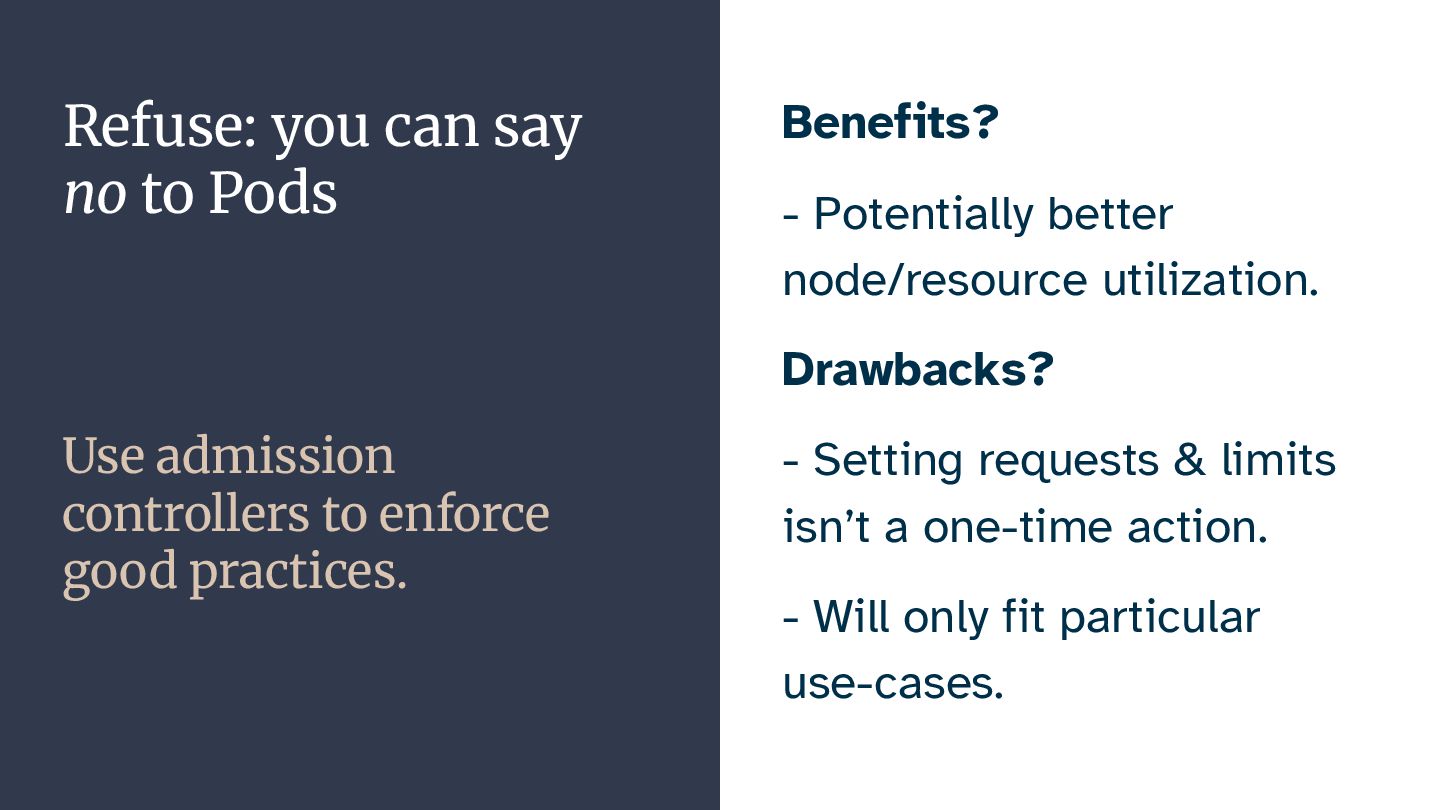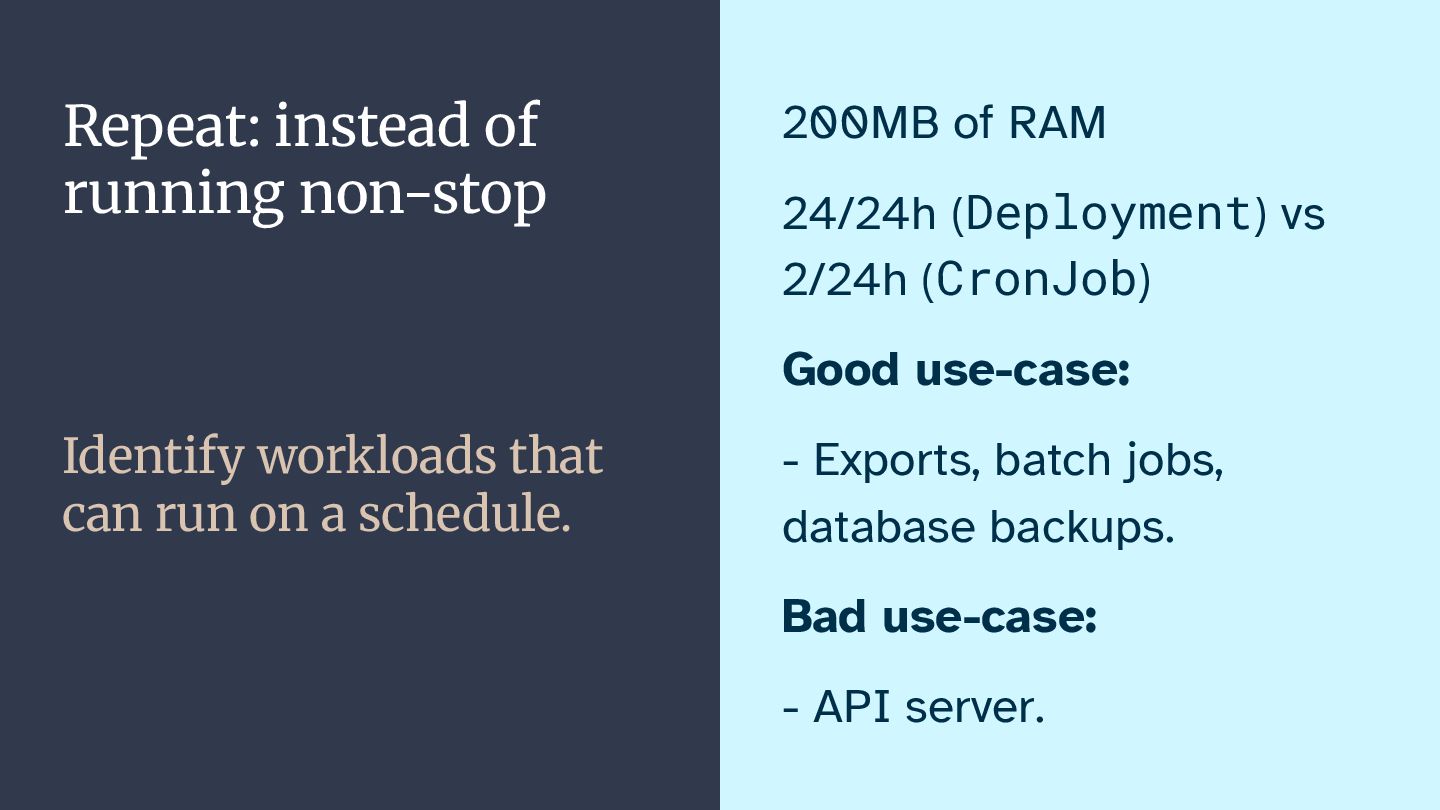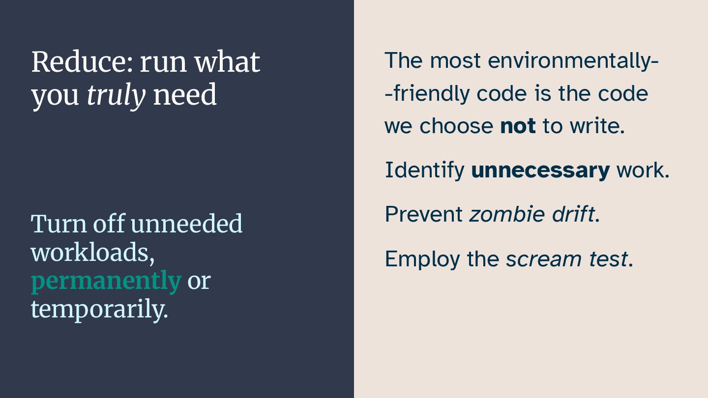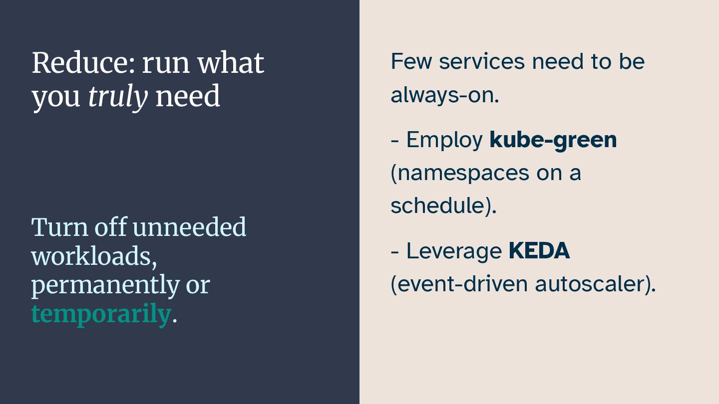 In this talk, I want to highlight areas of running workloads on Kubernetes that organizations can improve on. We'll take a starting point in the "reuse, reduce, recycle" principle of environmental protection, and see how we can apply it to our applications running on Kubernetes.