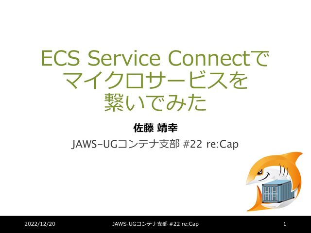 ECS Service Connectで マイクロサービスを 繋いでみた 佐藤 靖幸 JAWS-UGコンテナ⽀部 #22 re:Cap
